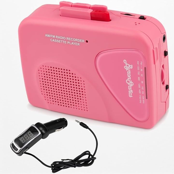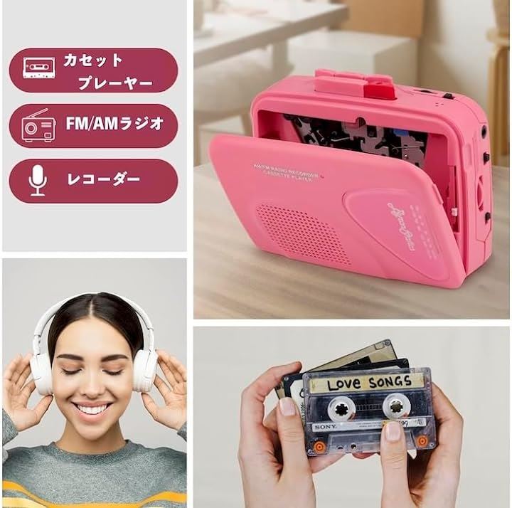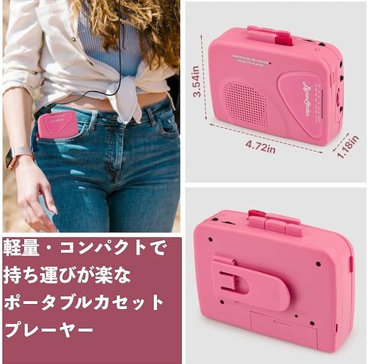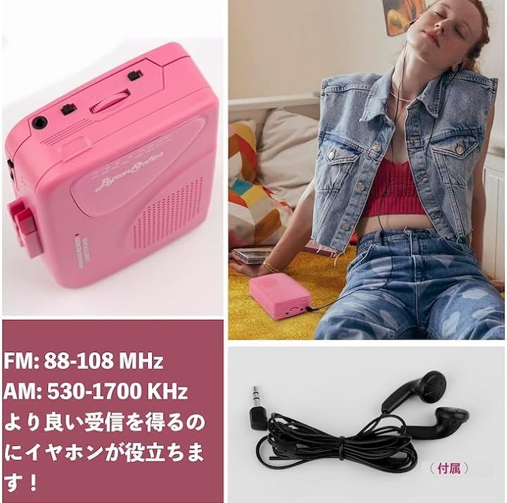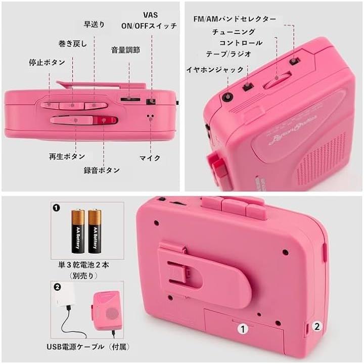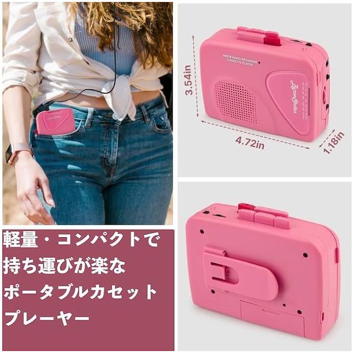 《ドライブセット》 ポータブルカセットプレイヤー FMトランスミッター FM/AMラジオ 内蔵マイク 外部スピーカー USB電源コード イヤホン付属