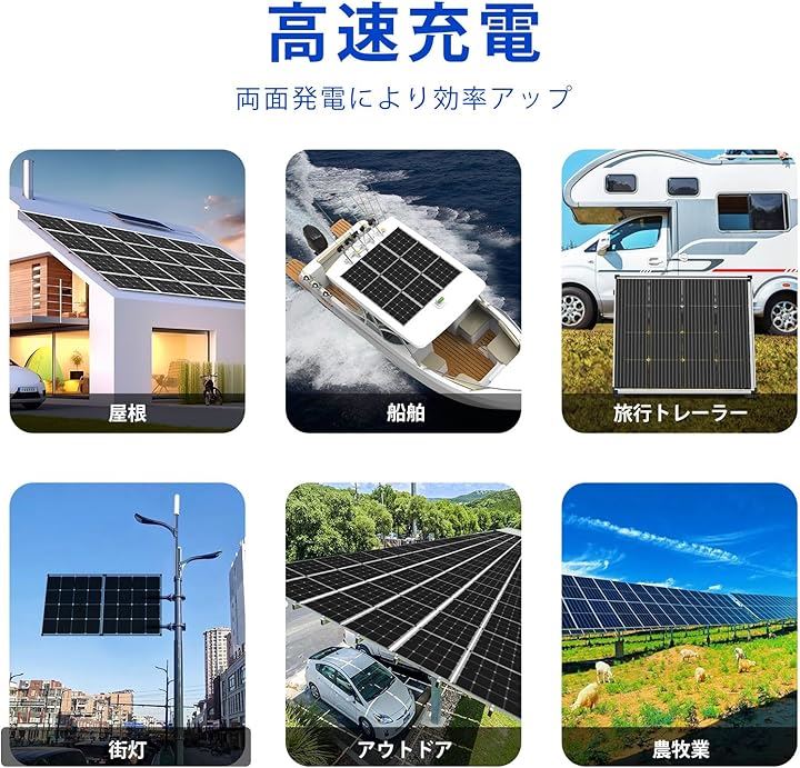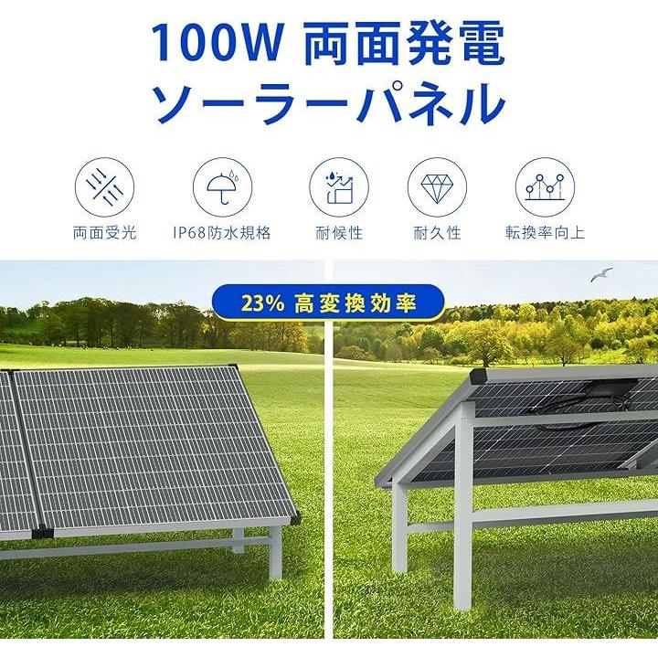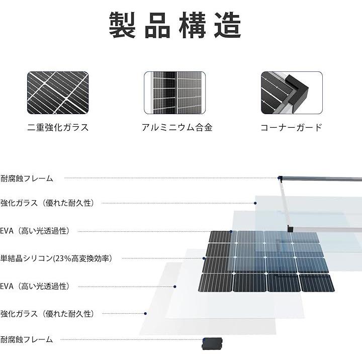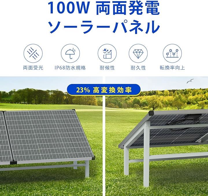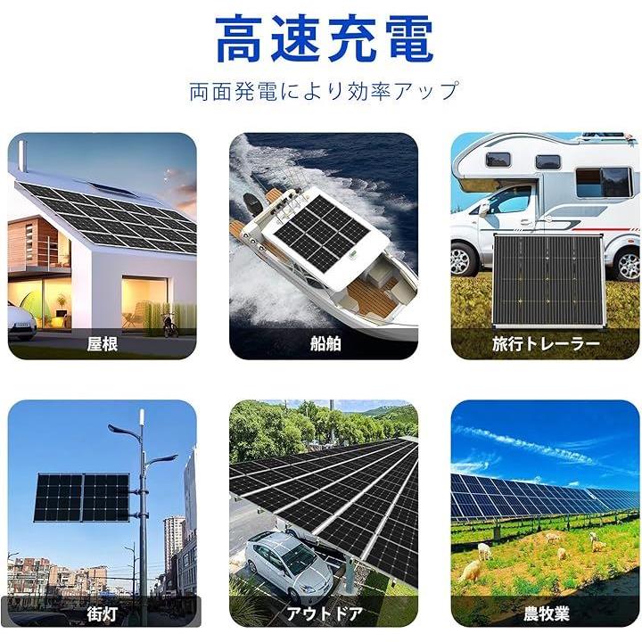 ソーラーパネル 100W 単結晶 両面発電 太陽光パネル 高転換率 超高効率 太陽光発電パネル ソーラーチャージャー IP68 防水 防塵 小型 キャンピングーカー、車、船舶、屋根、ベランダー 災害対策 防災グッズ 90cm MC4ケーブル付き