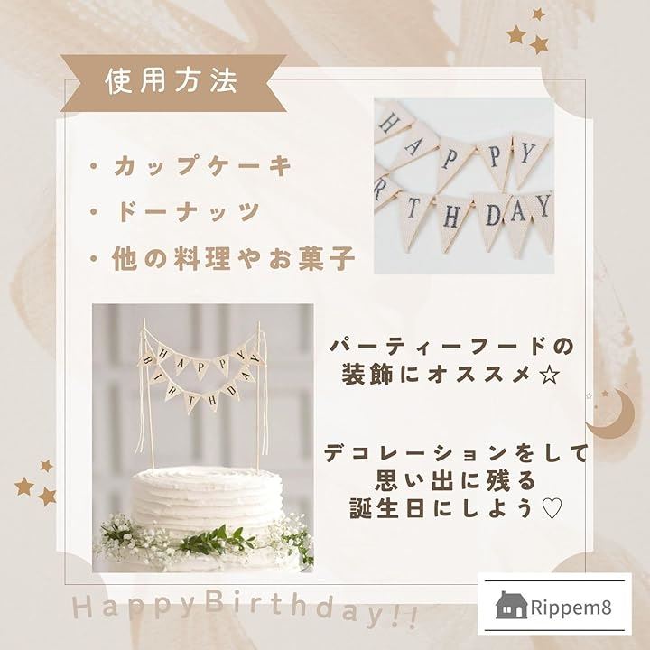 ケーキトッパー 誕生日 1歳 飾り Happy Birthday バースデー ガーランド