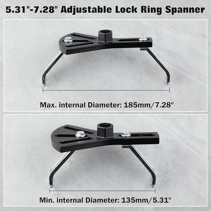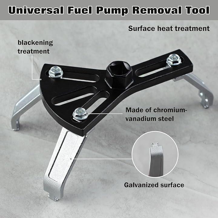 互換品 ユニバーサル燃料ポンプ取り外しツール 自由調整 オイルポンプレンチ 汎用型 燃料タンクキャップレンチ 135-185mm 調整可能 オープンエンドスパナ付き 両口スパナ 3爪タイプ 車用 修理用