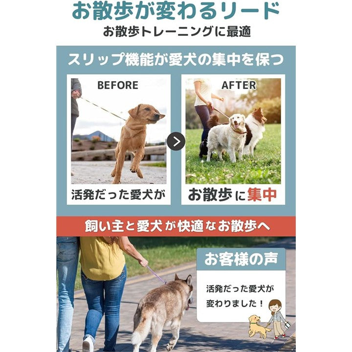 「 トレーニングに最適、愛犬が変わる 」 特に活発な愛犬や集中力が続かない愛犬にとって、スリップリードはおすすめです。
