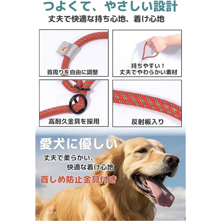 丈夫でやさしいつくりなので、飼い主と愛犬が笑顔になれるスリップリードです。