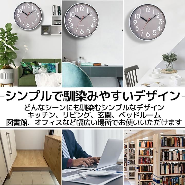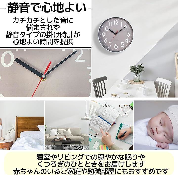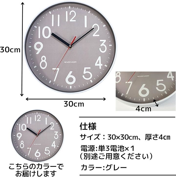 掛け時計 壁掛け 静音 北欧 おしゃれ 3D立体数字 見やすい モダン 30x30cm グレー