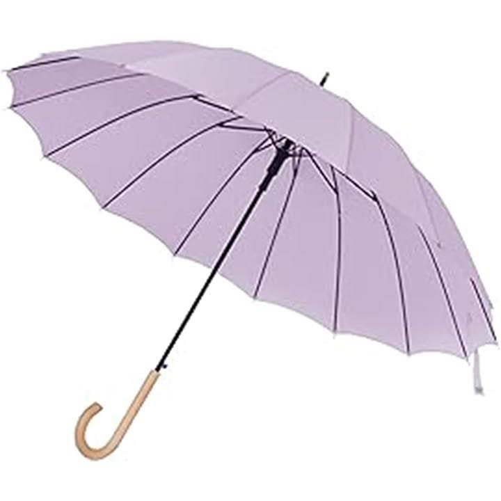 傘 長傘 木製ハンドル レディース 16本骨 親骨60cm 雨傘 日傘 ジャンプ式 大きめ おしゃれ ワンタッチ 婦人傘 紳士傘 パープル