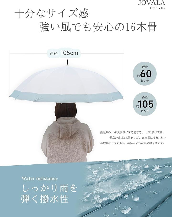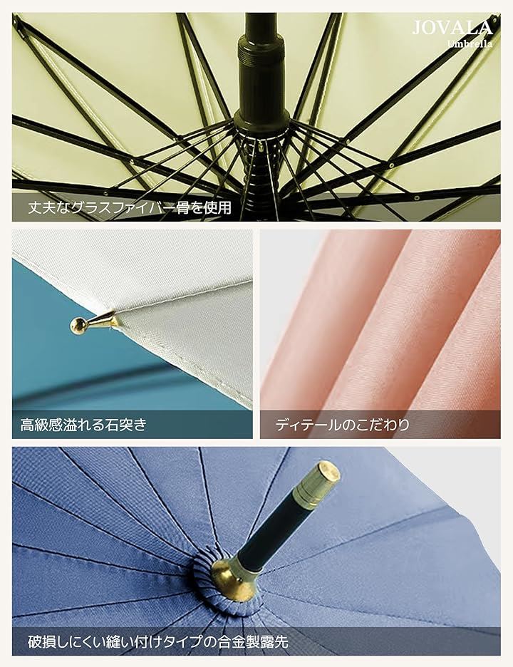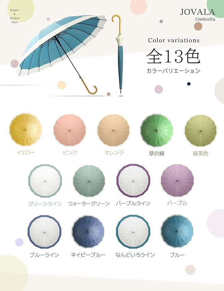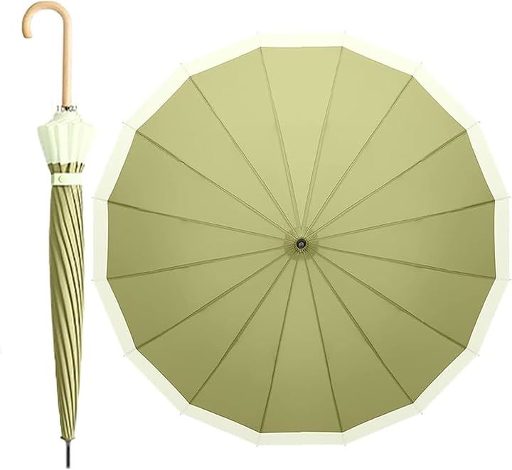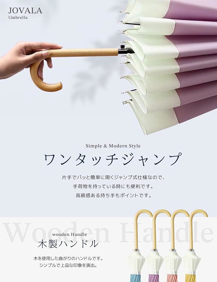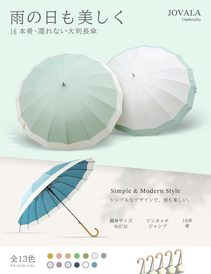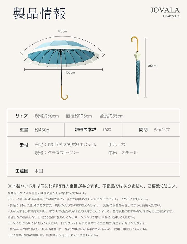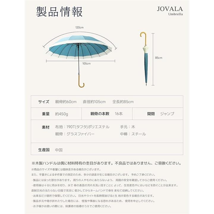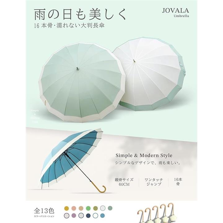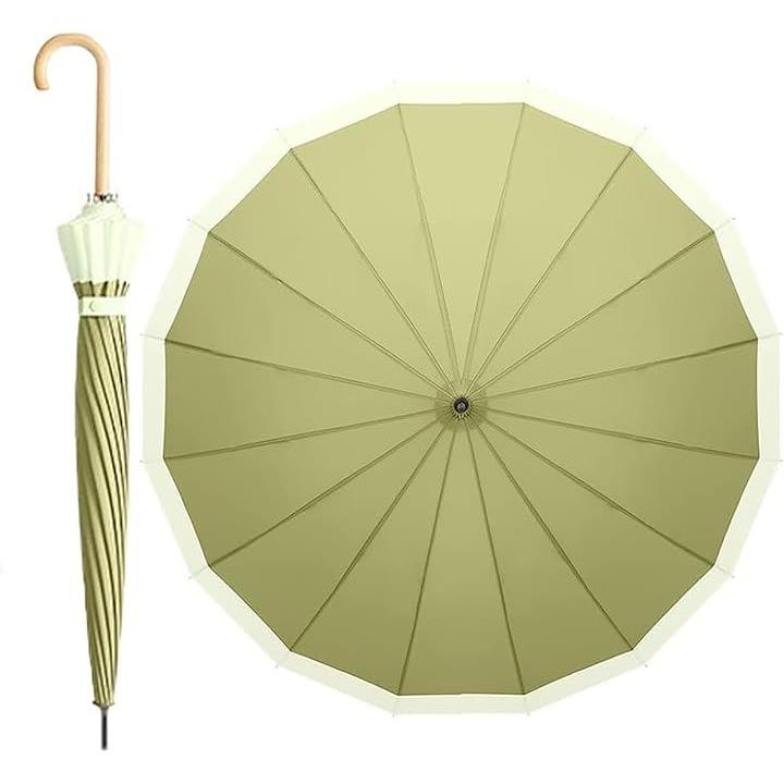 傘 長傘 木製ハンドル レディース 16本骨 親骨60cm 雨傘 日傘 ジャンプ式 大きめ おしゃれ ワンタッチ 婦人傘 紳士傘 抹茶グリーン
