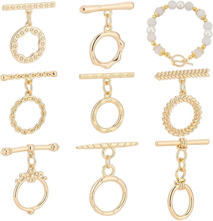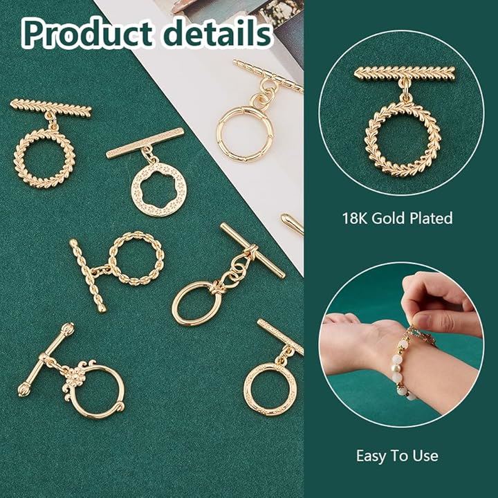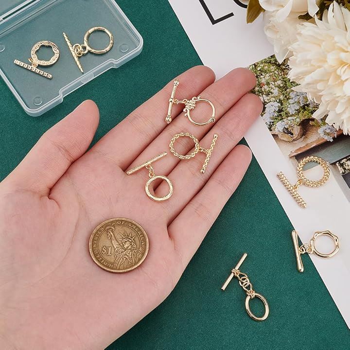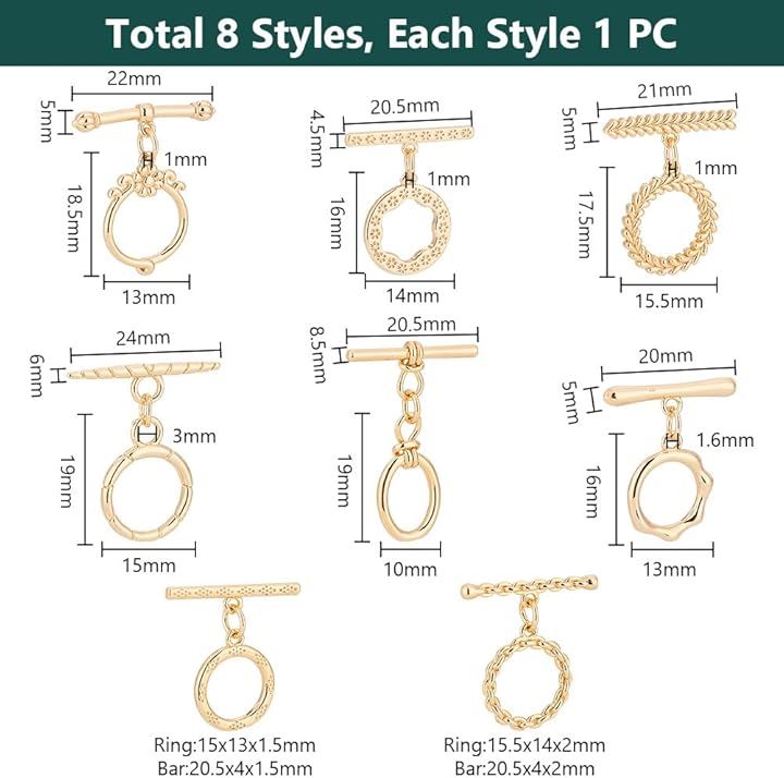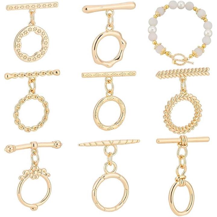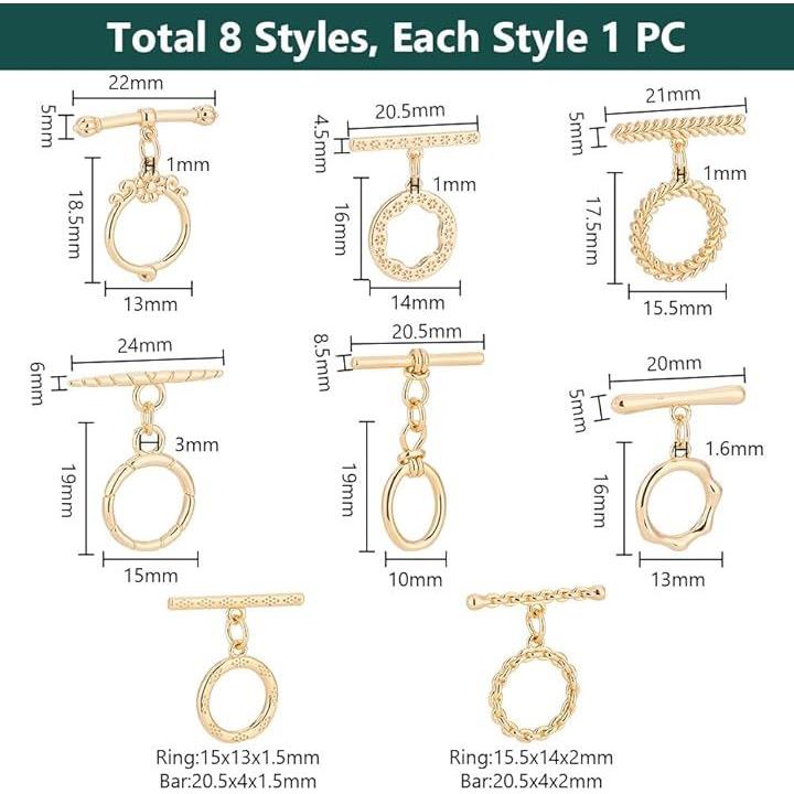 18金メッキ マンテル パーツ テルリング 接続金具 8スタイル 多種多様 留め具 Tバー付き トグル クラスプ ジュエリー用 アクセサリーパーツ ネックレス ブレスレット 手作り素材 手芸用品
