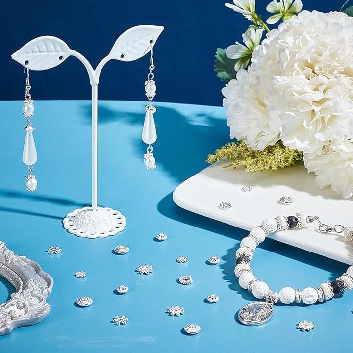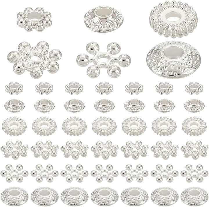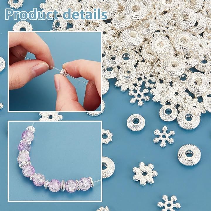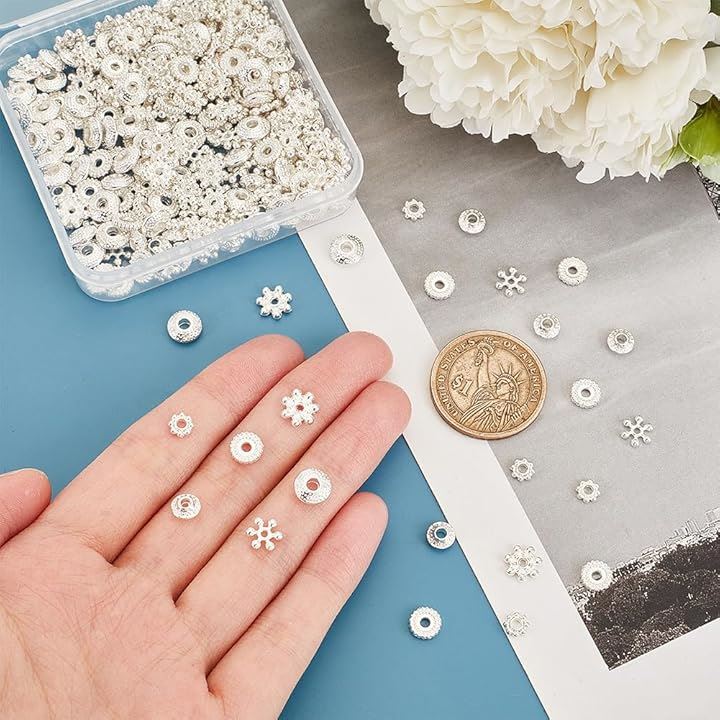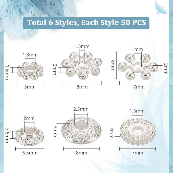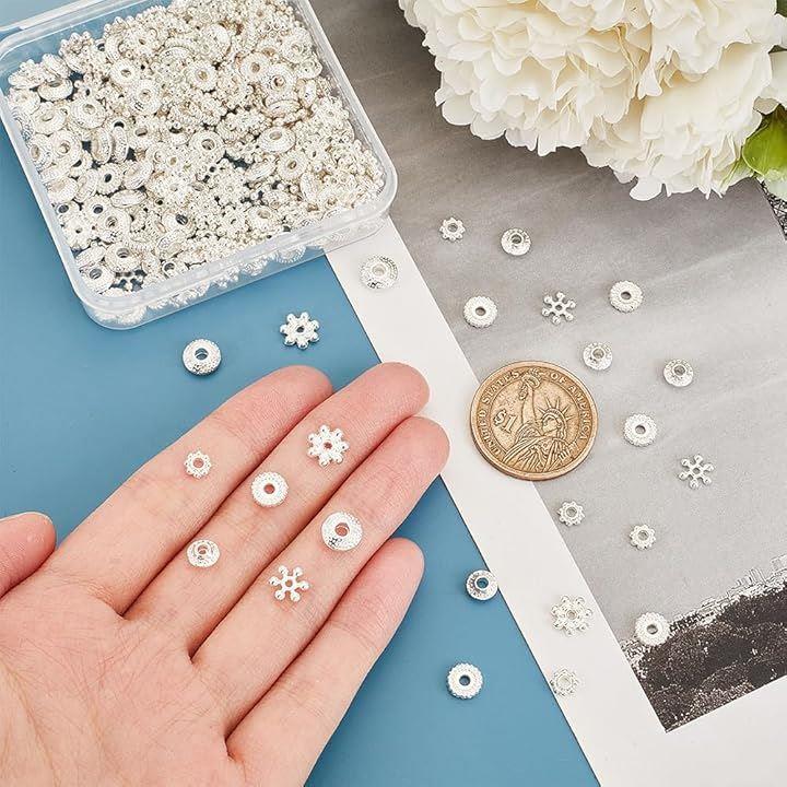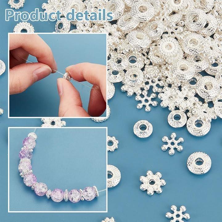 300個 合金 スペーサービーズ 6種類 菊座 花座 座金 ロンデル メタルビーズ チベット風 ジュエリー製作 アクセサリーパーツ DIY用 クラフト 手作り素材 シルバー