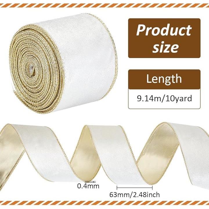 互換品 リボン ベルベットリボン 長さ9m 63mm幅 片面 ラッピング ウェディング クリスマス 結婚式 家の装飾 ヘアアクセサリー ギフトの包装を作る 服飾に適用 白色