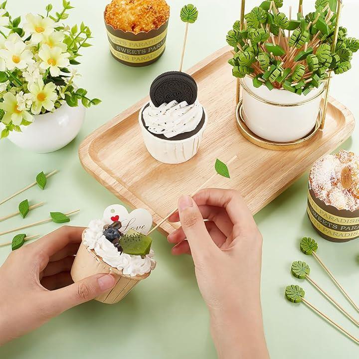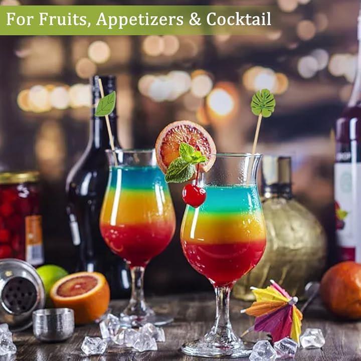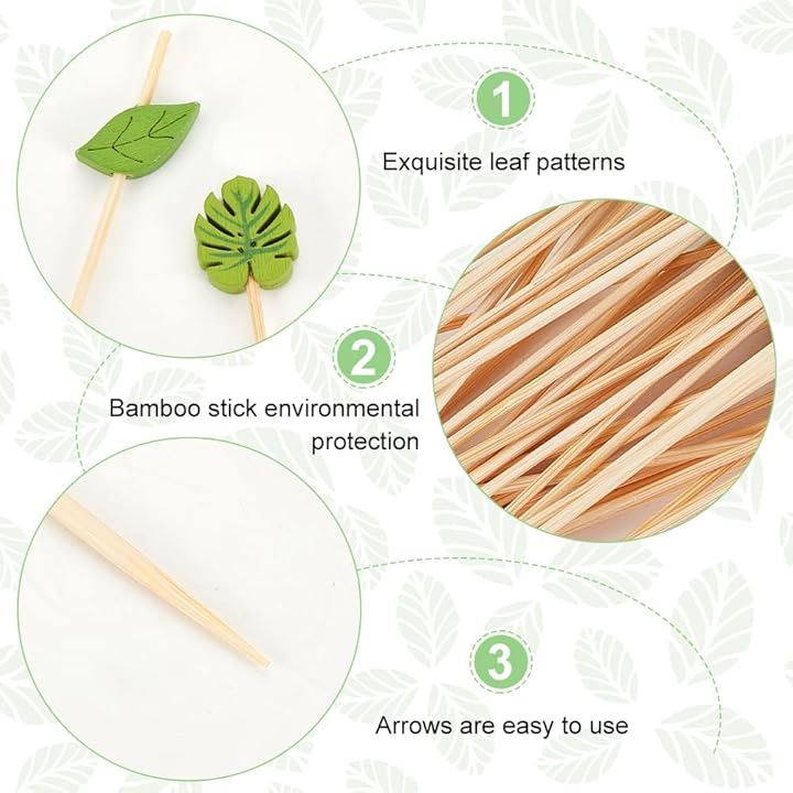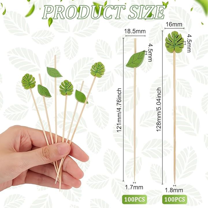 200個2種類 カクテルピック 竹 葉 長さ12.1cm/12.8cm グリーン フルーツピック 爪楊枝 カクテルピン スティック 料理の飾り 業務用 喫茶店 飾り用 パーティー用