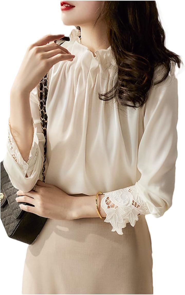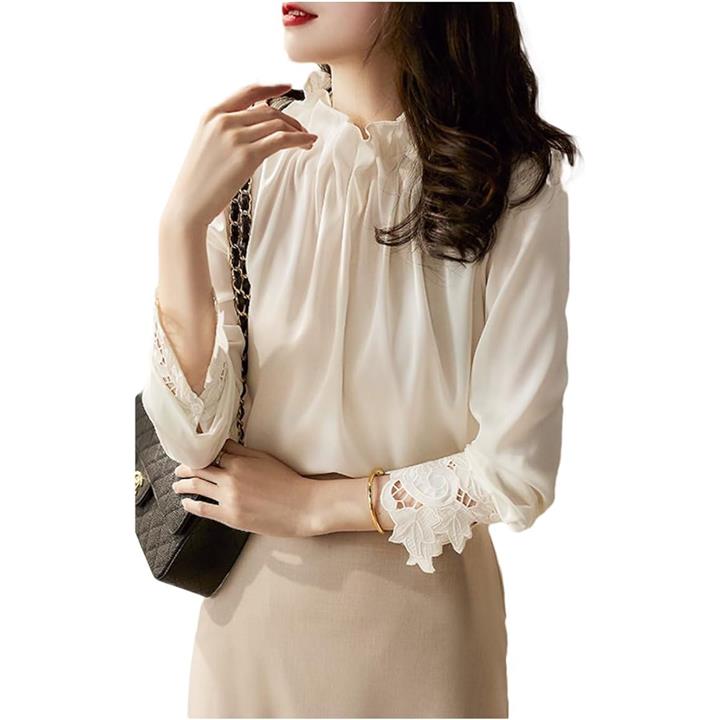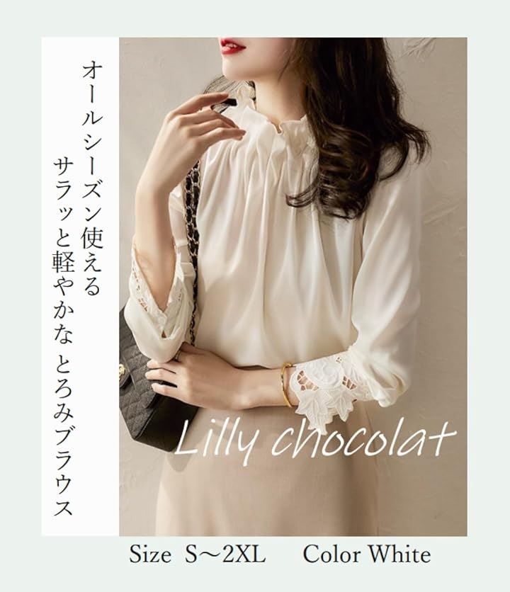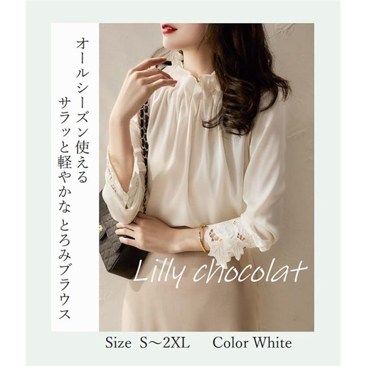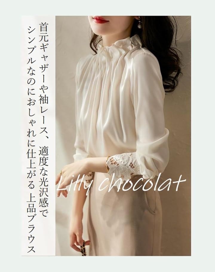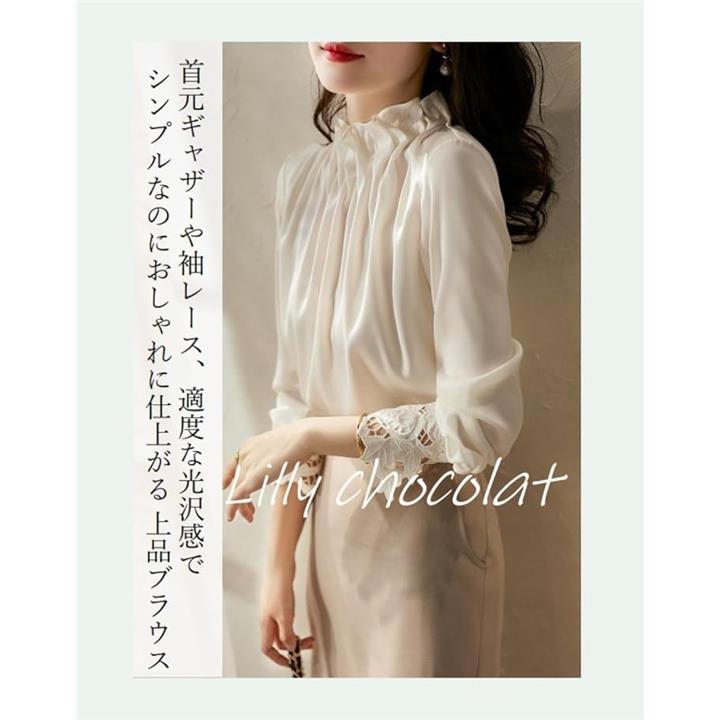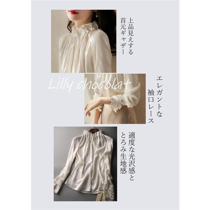 ブラウス レディース 長袖 春 ハイネックブラウス オフィス カラー