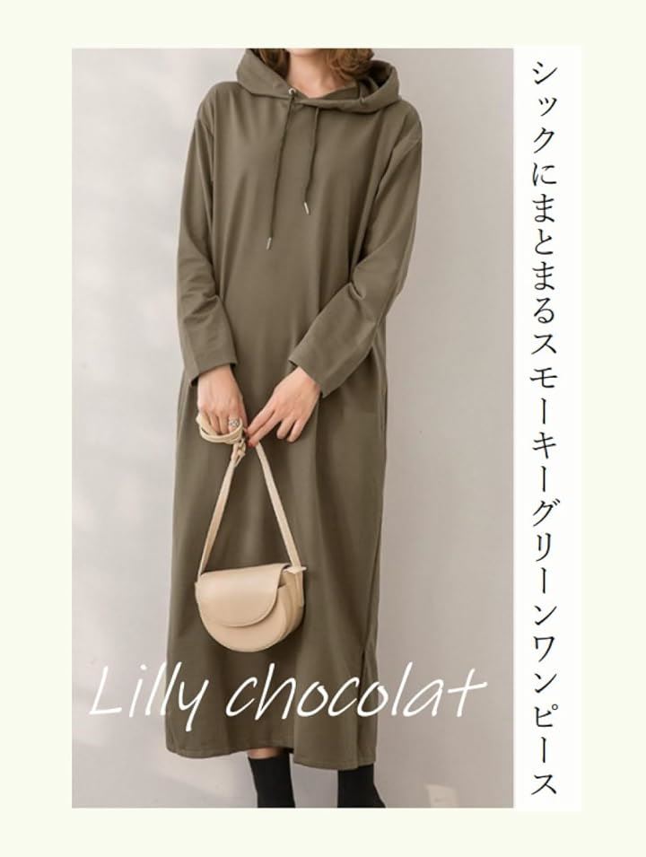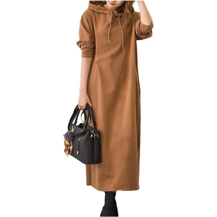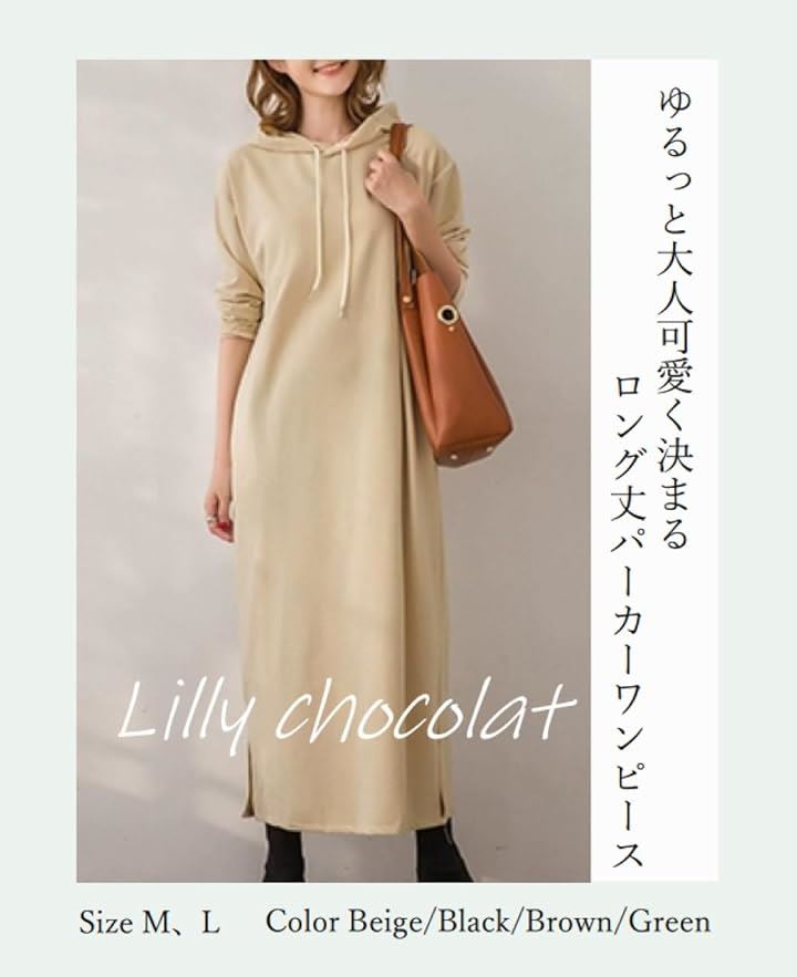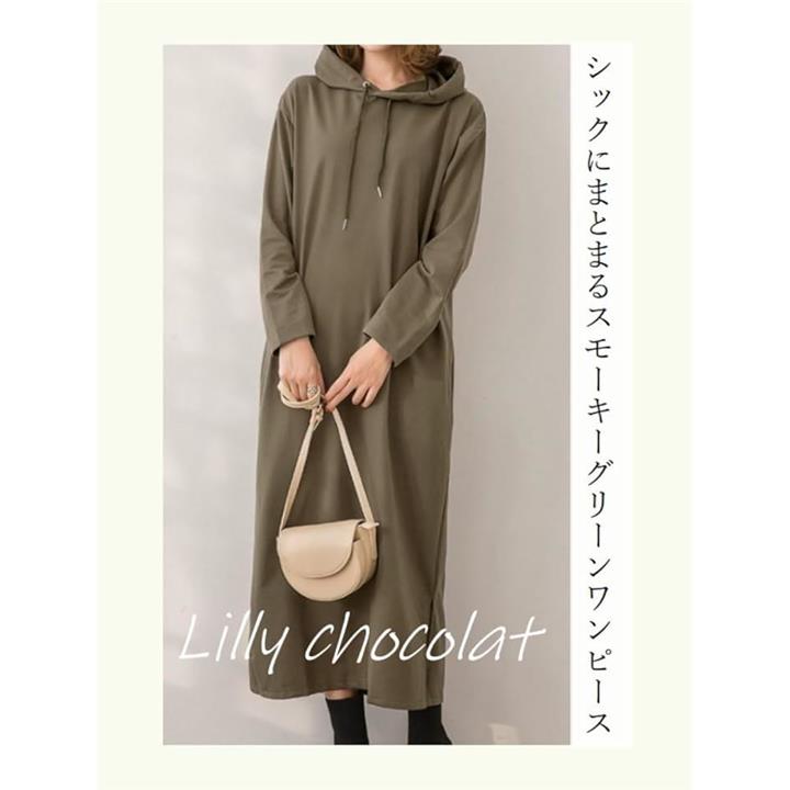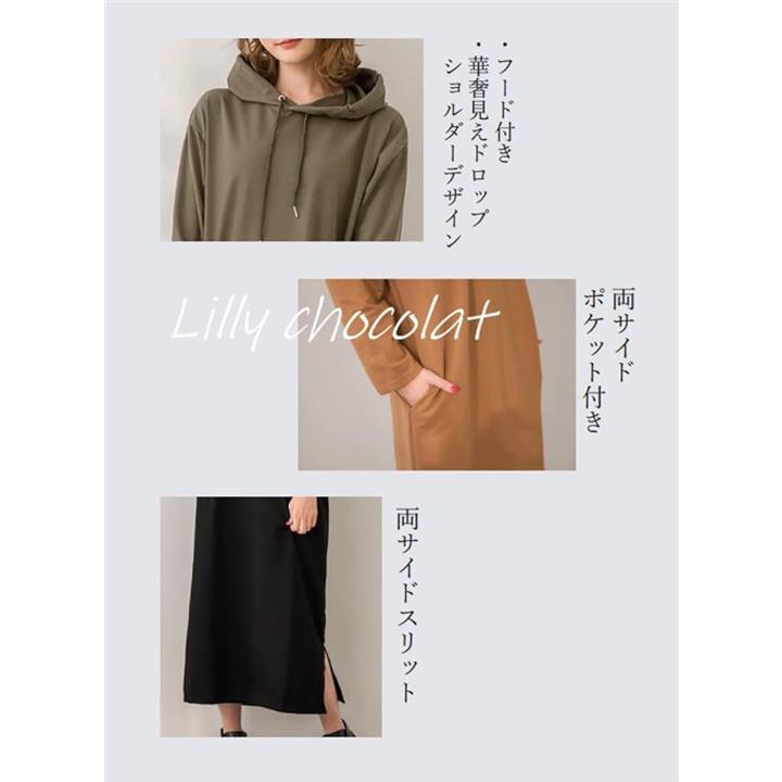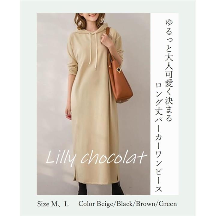 [Lilly chocolate] パーカーワンピース 長袖 レディース 秋 冬 ロングワンピース 春 無地 無地パーカー フード付きパーカー チャックなし フード付き パーカー おしゃれ 防寒 ダル着 室内着 秋冬 |