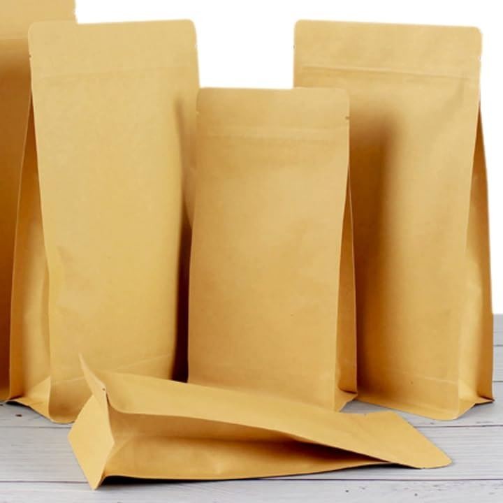 ジップ チャック 袋 側面 底面 マチあり 遮光 遮断 防湿 小分け 保存袋 SW2263 クラフト 内面アルミ 20枚 14x24+6cm
