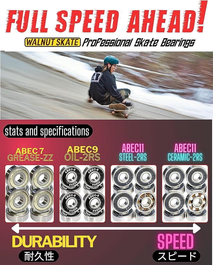 スケボー ベアリング インラインスケート ロングボード サーフスケート クルーザー ランバイク 低粘度 ルーブ スピード SKATE BEARINGS