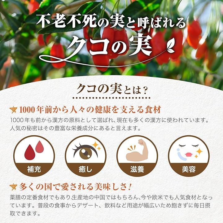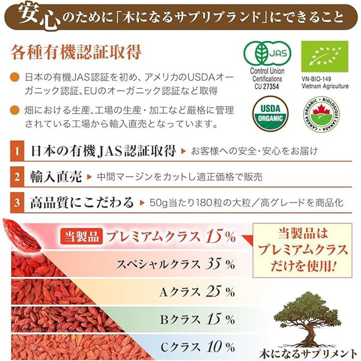木になるサプリ 日本JAS認証 有機 枸杞の実 無農薬 漢方薬にもよく使用 大粒厳選