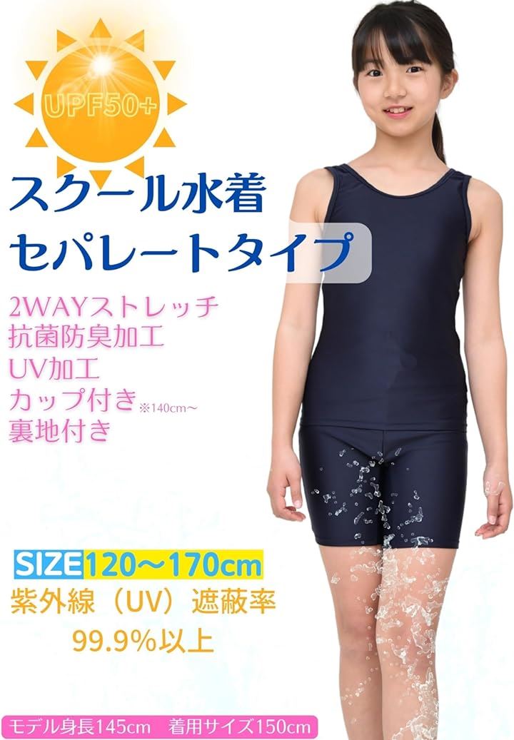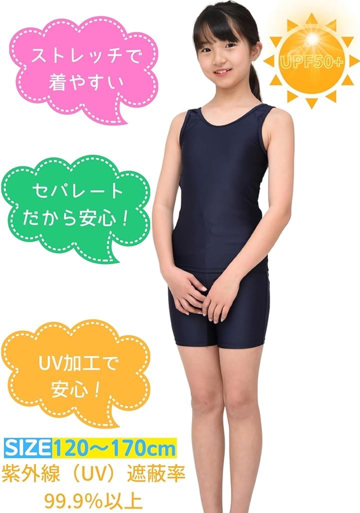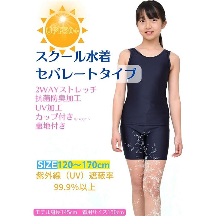 スクール水着 女の子 セパレート パンツタイプ 上下 キッズ 紫外線対策加工 めくれ防止ボタン付き プール