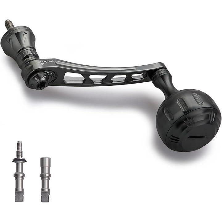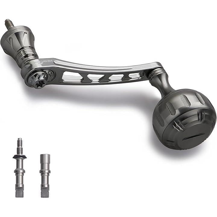 HEIGHTENリールハンドル高精度CNCマシンカット加工高品質70シリーズアルミニウム素材で軽く、強く仕上がっているダイワ(Daiwa)とシマノ(Shimano)に取り付けが可能人体工学と滑り止め設計でグリップ感が体感できる、質感も良くハンドル部のステンレス材質ベアリングも精度良く回転、手にフィットするノブに変えることで、コントロール性能が上がり、一日中巻いても疲れない。