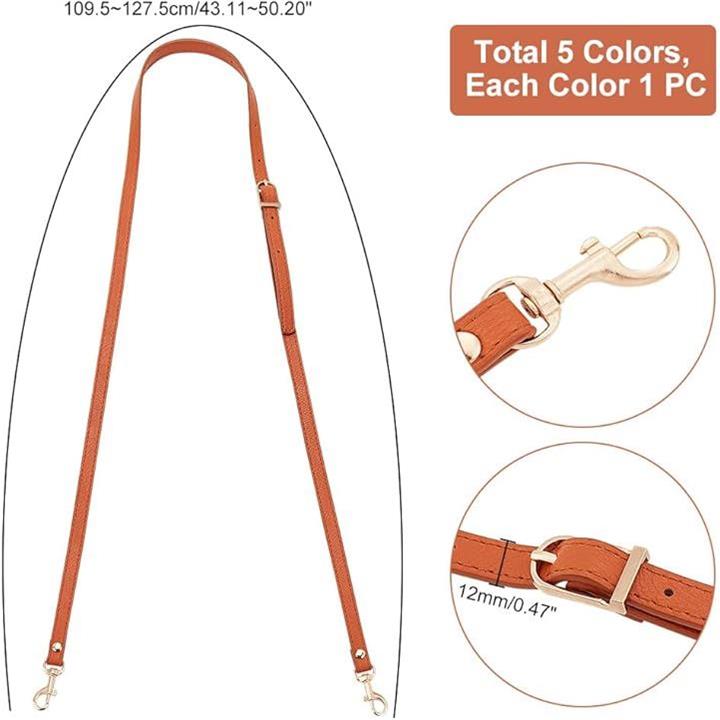 ショルダーストラップ 5本 PUレザー 肩ひも 持ち手 斜め掛け 調節可能 バッグ修理 交換用 付け替え ベルト バッグ用 ハンドメイド バッグパーツ 手作りスマホケース ゴールド留め具付き 109.5~127.5x1.2cm