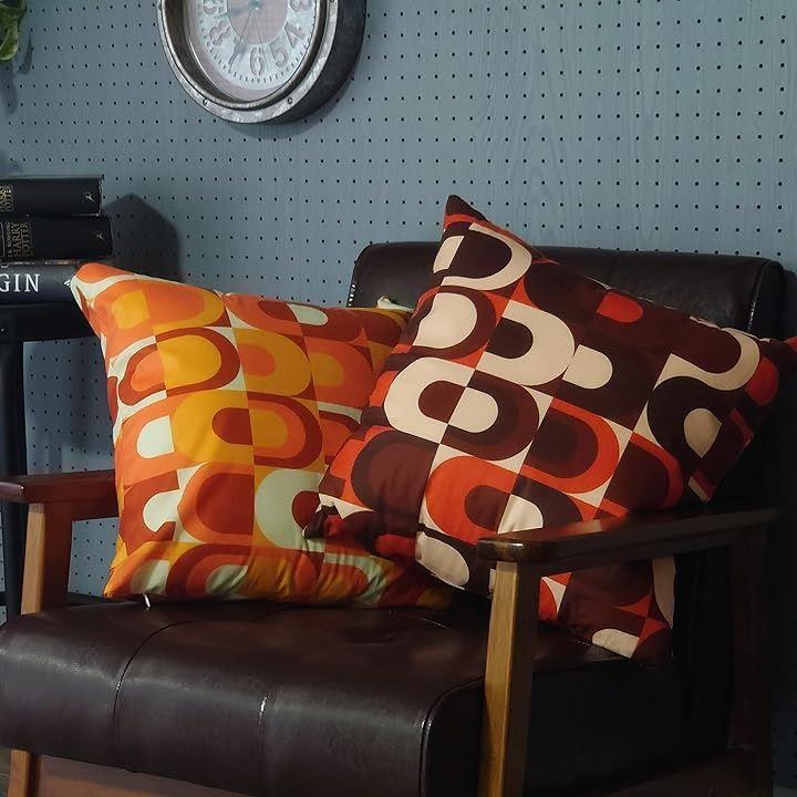 ミッドセンチュリー クッションカバー 45x45cm レトロ モケット 起毛 北欧 2枚セット A