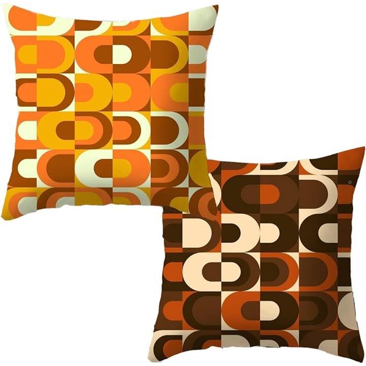 ミッドセンチュリー クッションカバー 45x45cm レトロ サテン 北欧 2枚セット