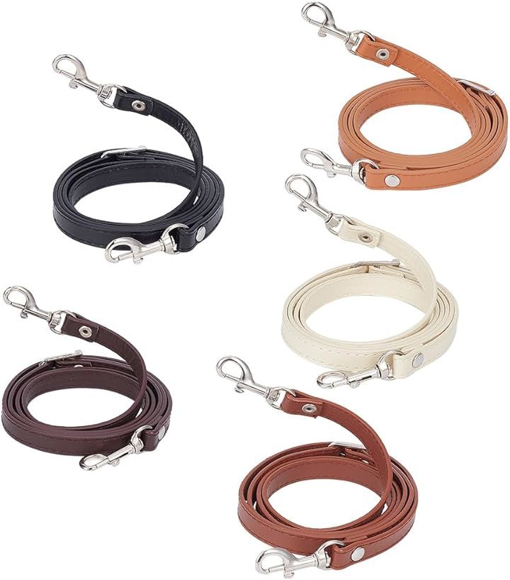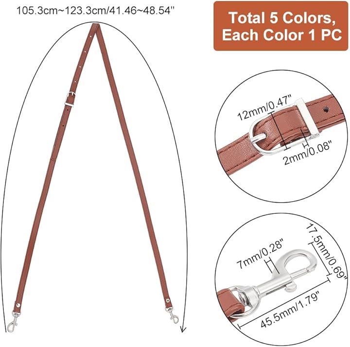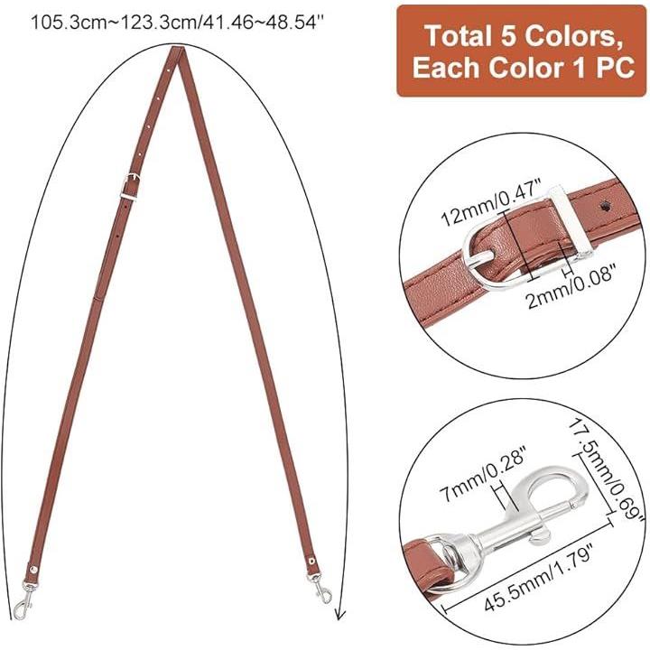 ショルダーストラップ 5本 PUレザー 肩ひも 持ち手 斜め掛け 調節可能 バッグ修理 交換用 付け替え ベルト バッグ用 ハンドメイド バッグパーツ 手作りスマホケース シルバー留め具付き 105.3~123.3cm