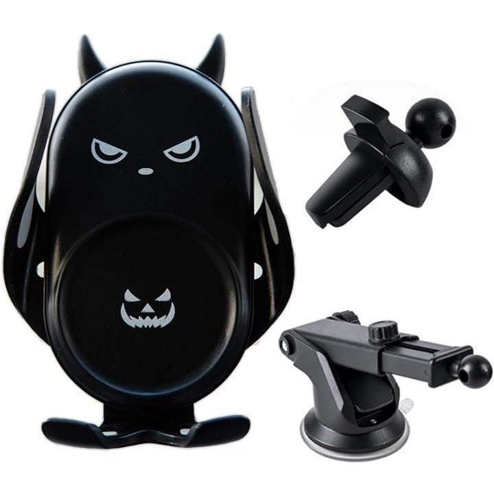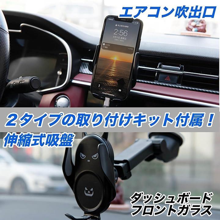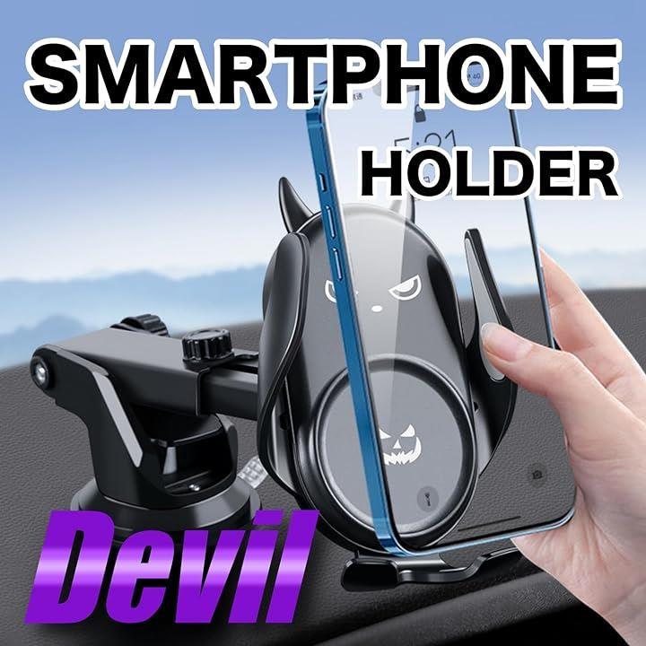スマホホルダー 悪魔 デビル 車載ホルダー 粘着 吸盤 エアコン吹き出し口 Black