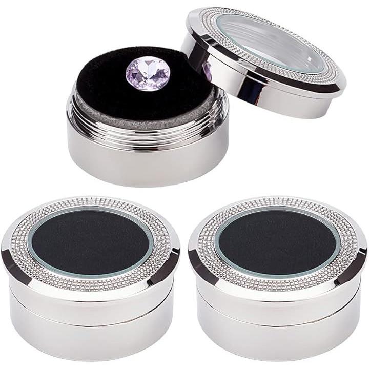 2個 ディスプレイケース 宝石ディスプレイボックス 軽量 ステンレス 収納ボックス 透明窓付き ジュエリーコンテナ用クッション 3.25x1.65cm/1.28x0.65インチ
