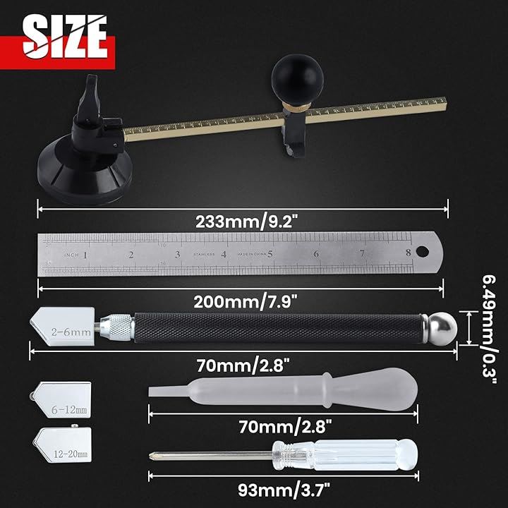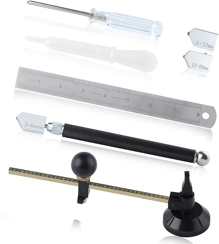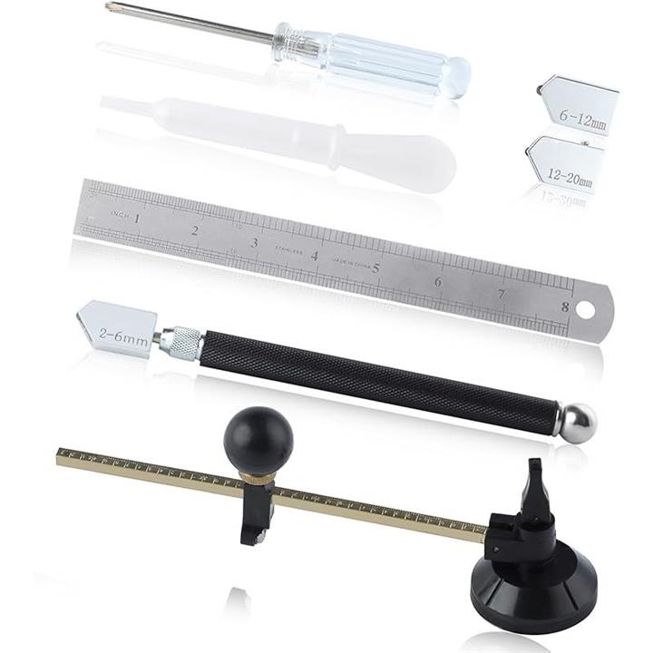ガラス円形カッター ガラスサークルカッター 直径40cm コンパス型ガラスカッター オイル式 ガラス切りカッター 替刃 2-6mm 6-12mm 12-20mm ガラスカット工具 超硬オイル硝子切り 調節可能 オイル補充 高耐久 ガラス切削工具 切断工具 DIY 作業用