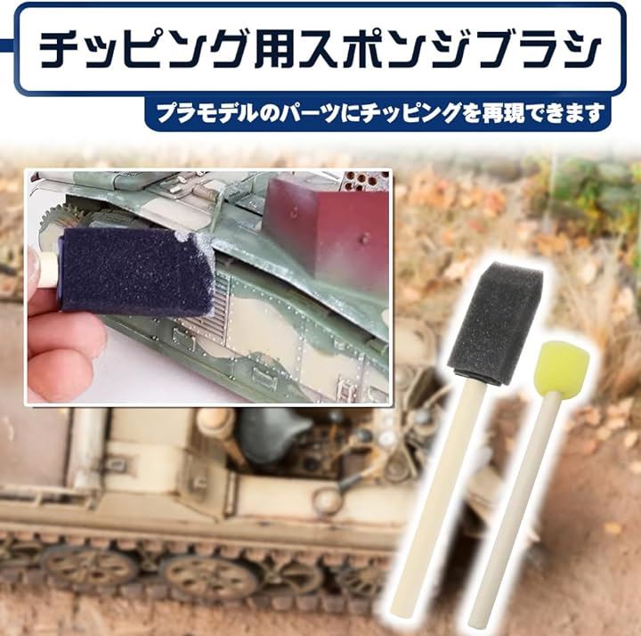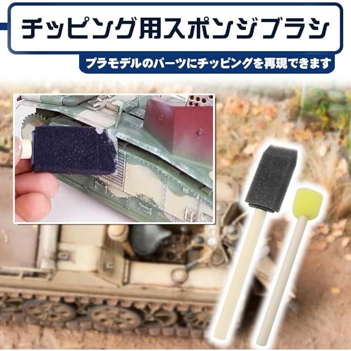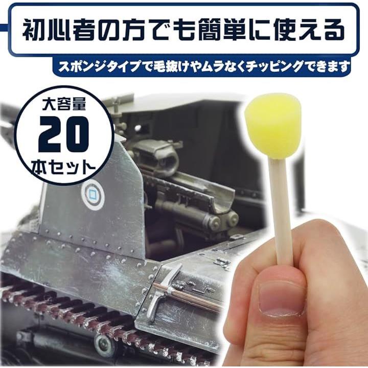 ウェザリング用スポンジブラシ 2種セット 大容量 合計20本 汚し塗装 プラモデル 模型 持ち手付き