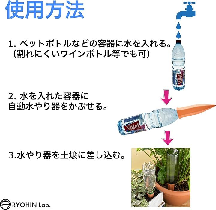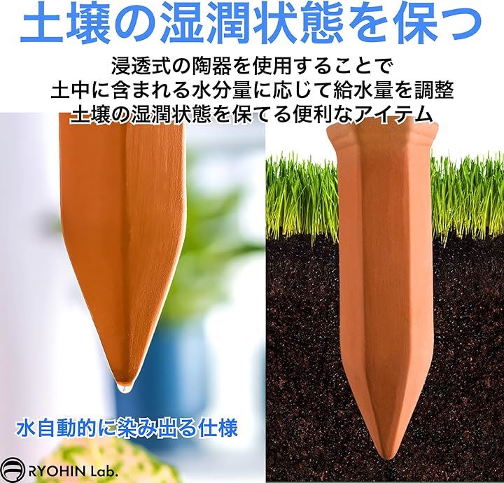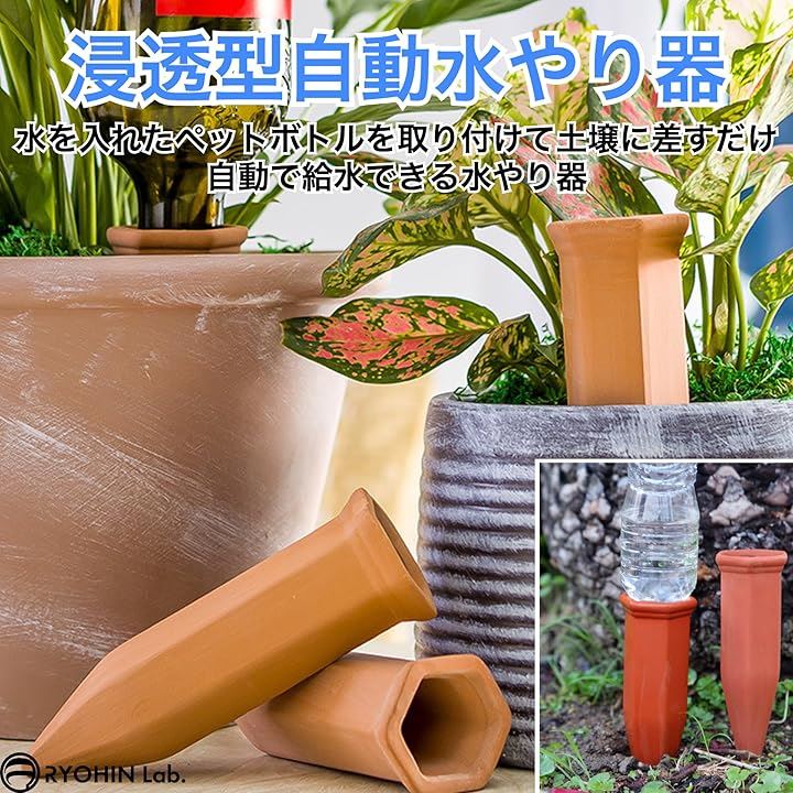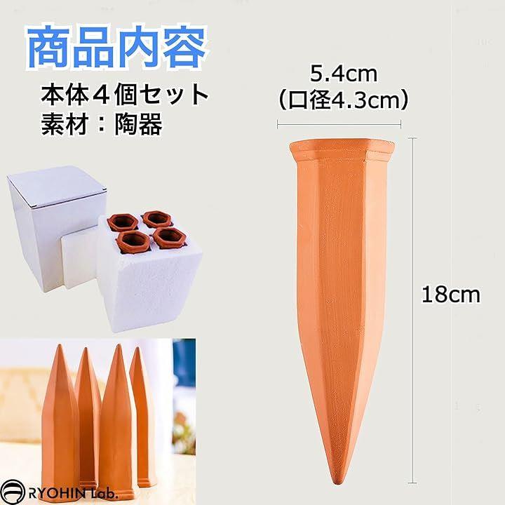 良品ラボ 自動水やり器 陶器 ペットボトル 観葉 植物 景観デザイン 留守中 簡単 挿すだけ 鉢植え プランター 浸透式 4本セット