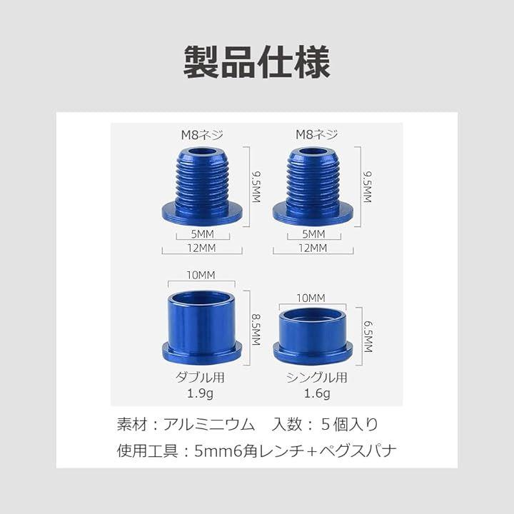 チェーンリングボルト 自転車 フロント ギア 固定ネジ 軽量 アルミ合金 5個入り