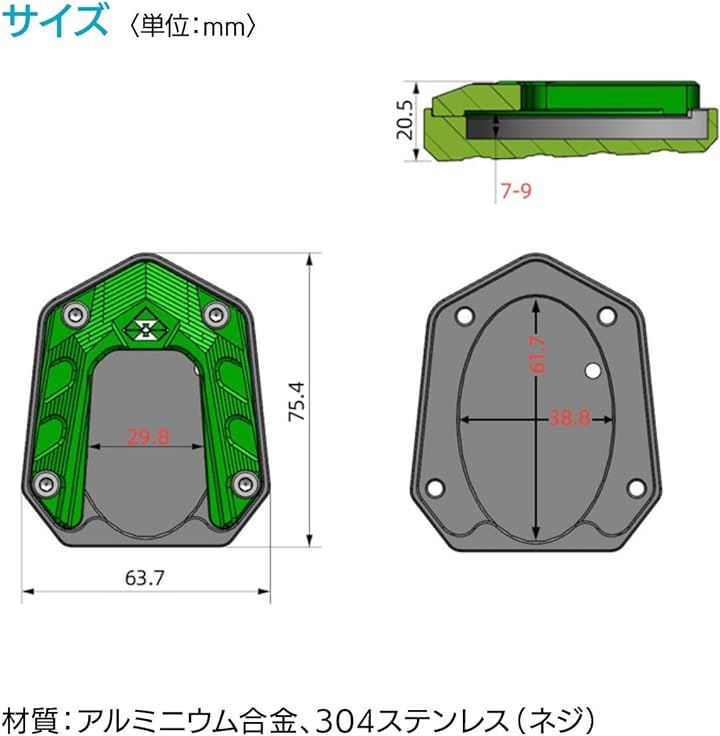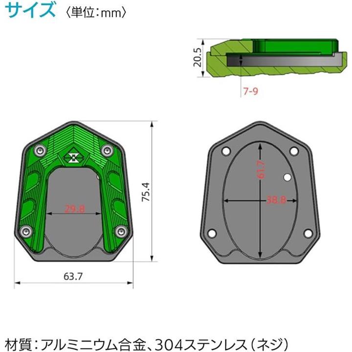 互換品バイク用 サイドスタンド プレート ZX-25R/NINJA250/NINJA400/Z250/Z400対応