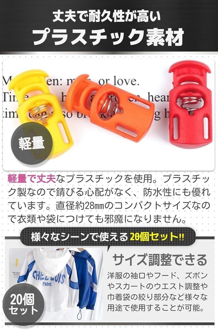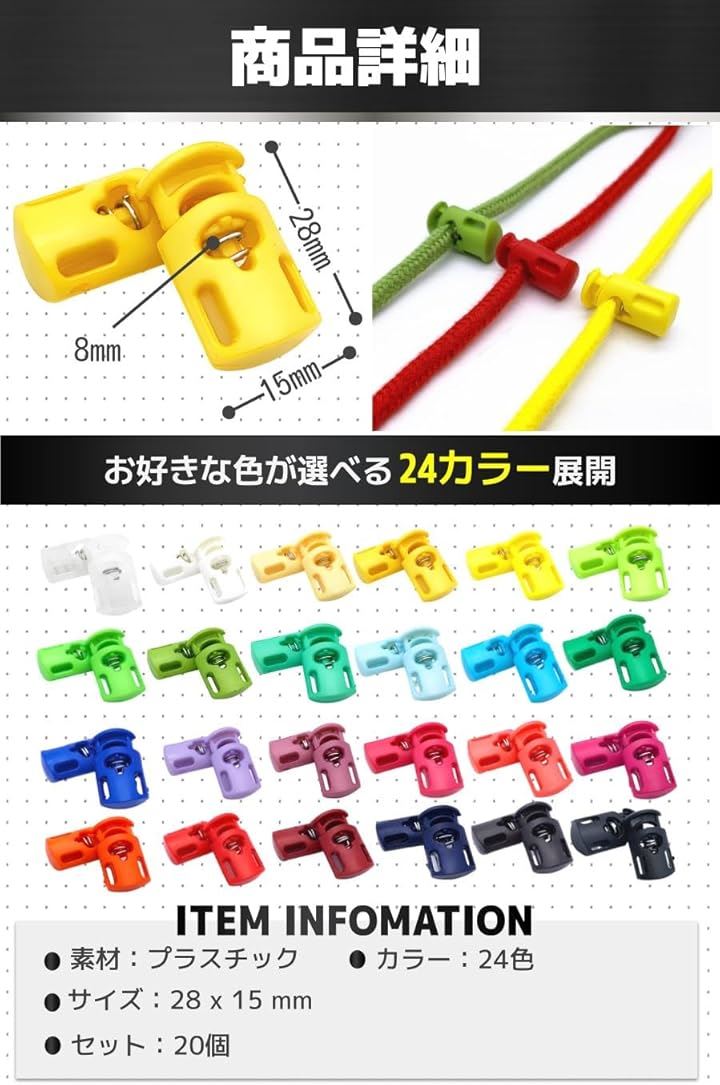 コードストッパー 紐止め 1穴 穴径8mm 20個セット