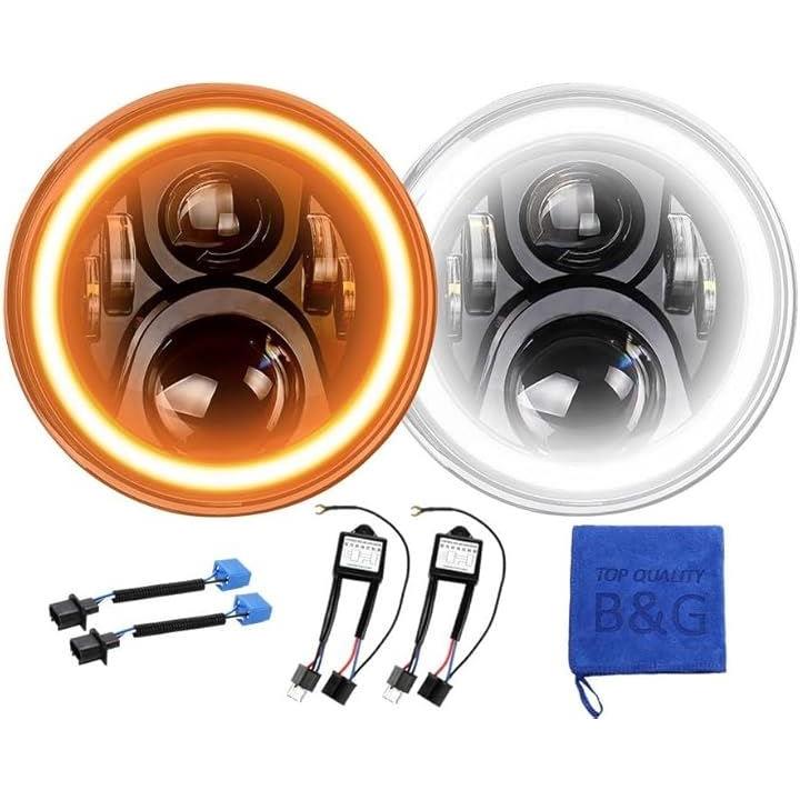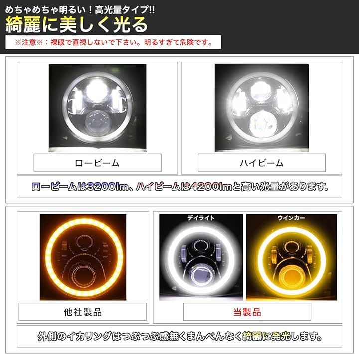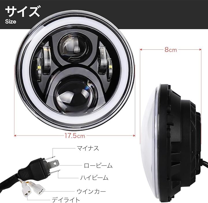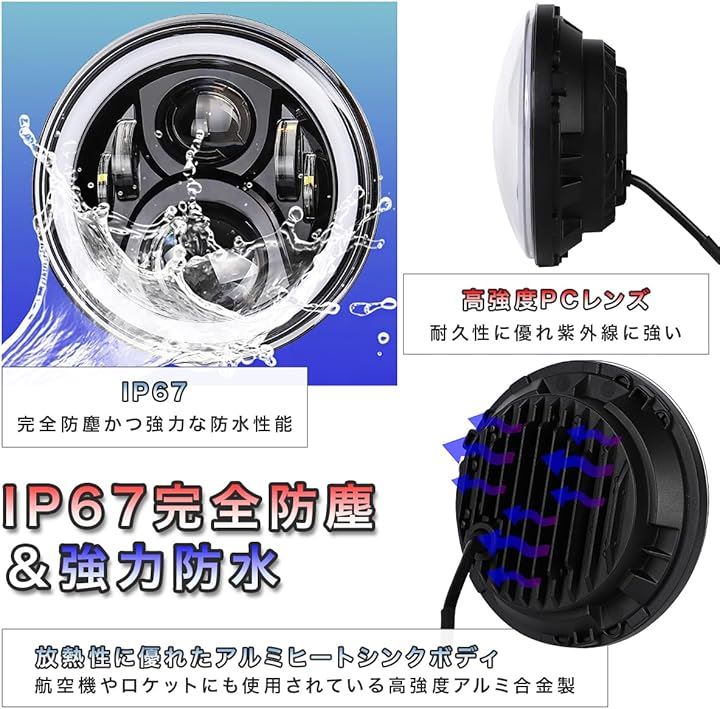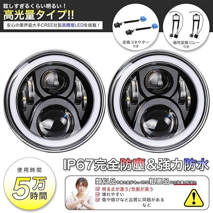 眩しすぎるくらい明るい/CREE製LED搭載 7インチ ヘッドライト イカリング 6レンズ 12v 24v 兼用 jkラングラー デイライト ウインカー 機能付き ジープ jeep ジムニー jimny トヨタ FJクルーザー 2個セット 黒 ブラック 極性変換リレー&変換コネクタ付き
