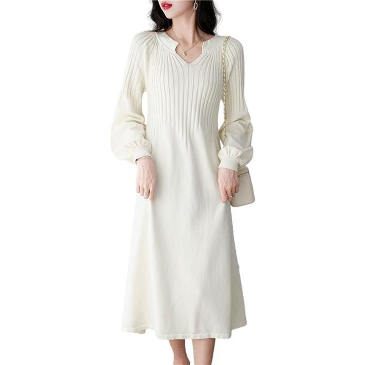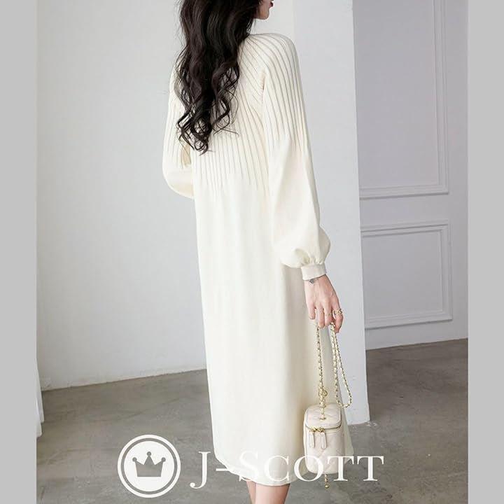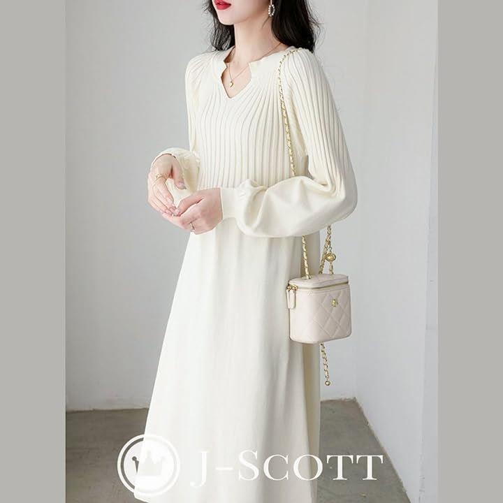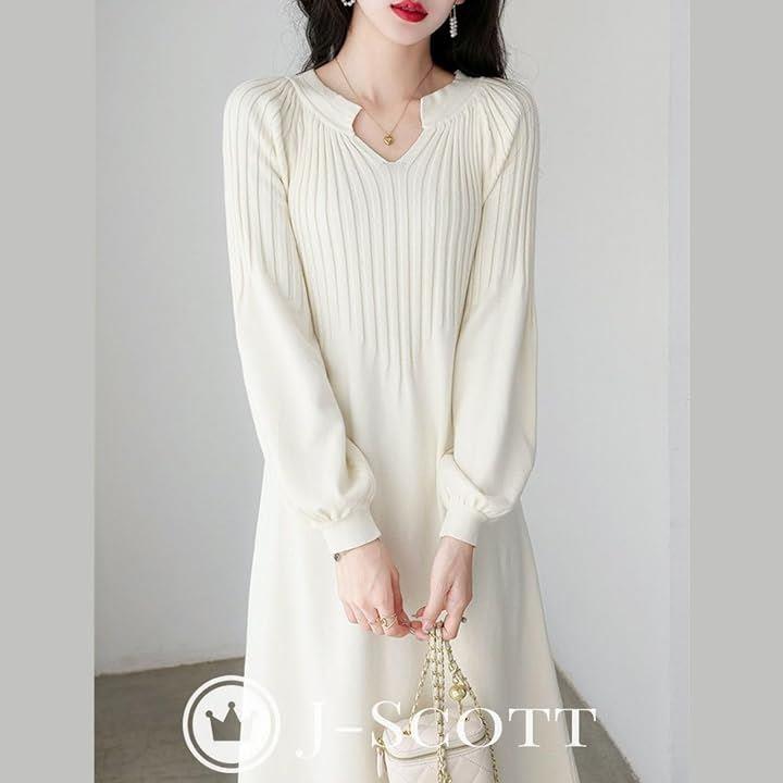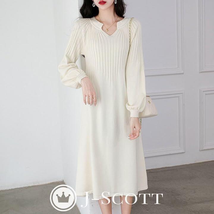 ニットワンピース パフスリーブ キーネック 10分袖 膝下丈 Aライン ゆるシルエット 合わせやすい らくちん 無地 ビッグ ロング袖 キレイめ リラックス 大人用 やわらかい キレイメ エレガント ミディアム 韓国 妊娠中 トレンド感 ユッタリ 細見え ホワイト JS103-WH-M |