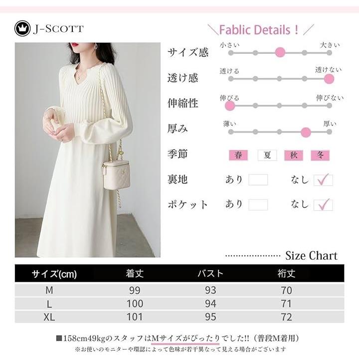 ニットワンピース パフスリーブ キーネック 10分袖 膝下丈 Aライン ゆるシルエット セーター シンプル 甘辛ミックス オーバーサイズ 女性用 デザインスリーブ フェミニン おおきい 大人かわいい ハイウエスト 細見せ ロングワンピ 産後 ホワイト JS103-WH-XL |