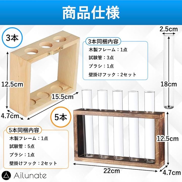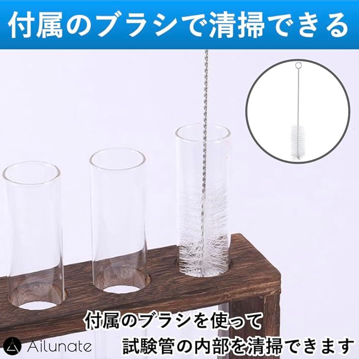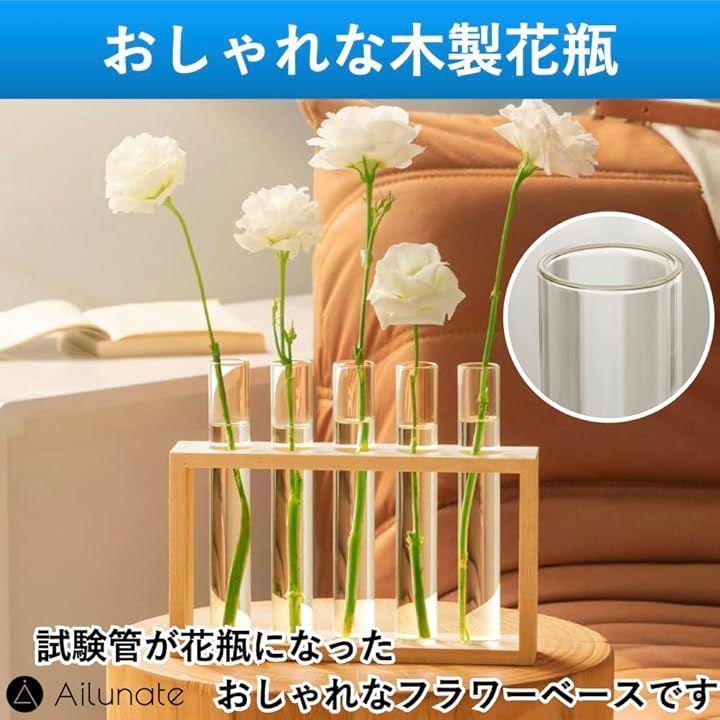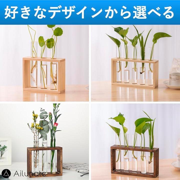 花瓶 ガラス 試験管 フラワーベース 花瓶台 木製フレーム 一輪挿し 卓上 壁掛け スタンド 水耕栽培 おしゃれ