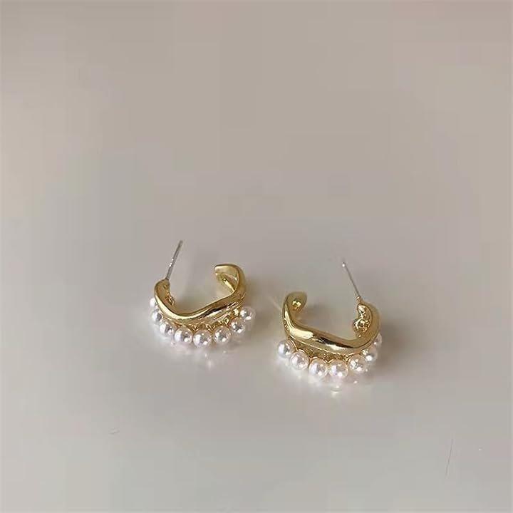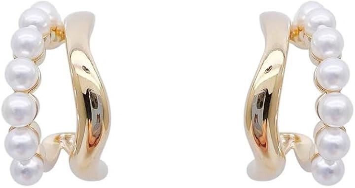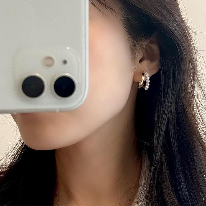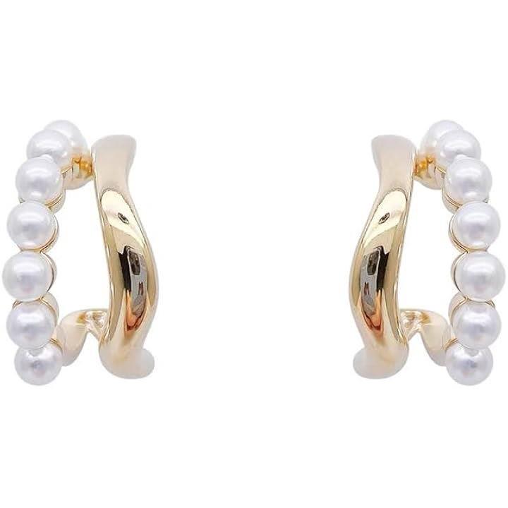 ピアス パールリング フープ 二連 ゴールド 両耳用2つ入り レディース パーティー お出かけ プチプラ