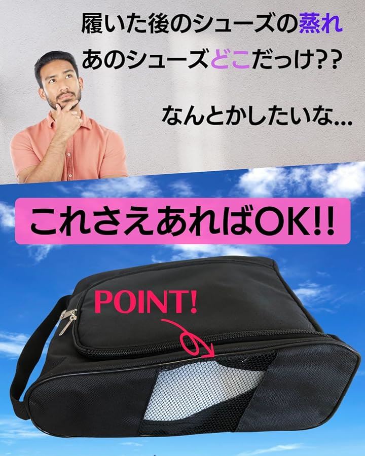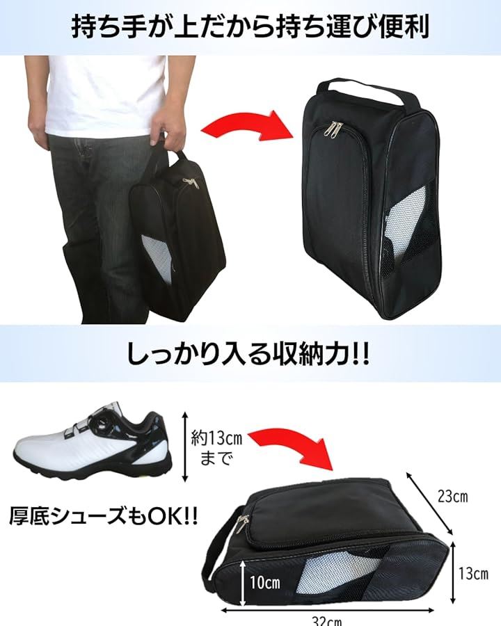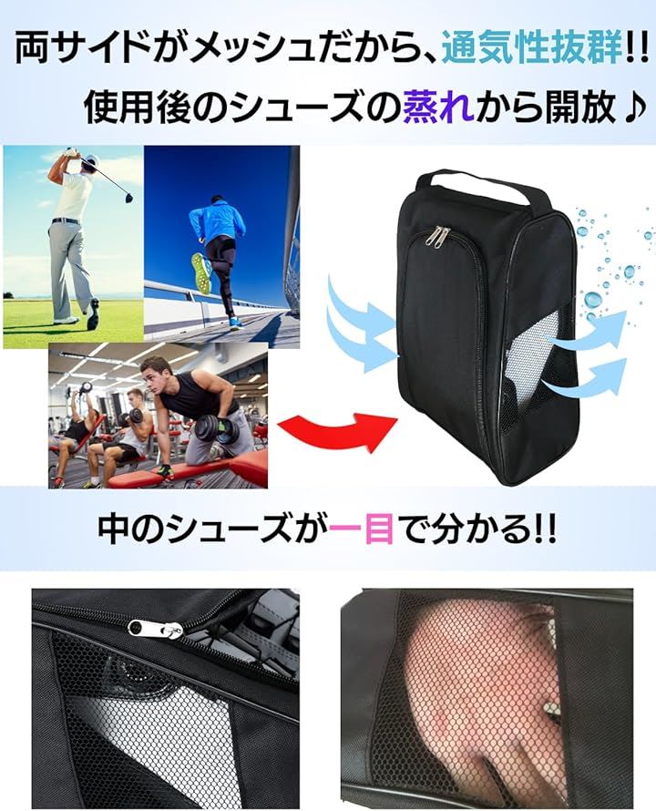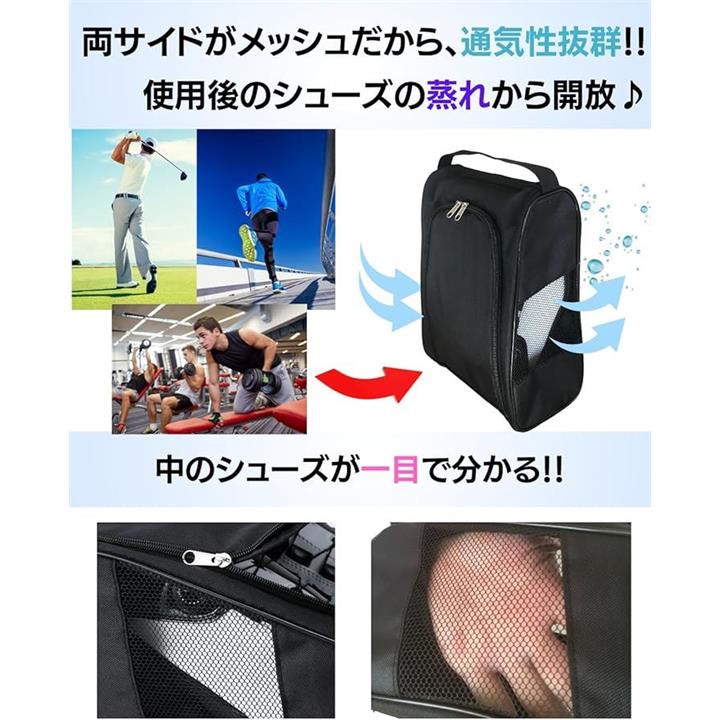 シューズケース ゴルフ ジム ランニング 蒸れない 通気性 メッシュ シューズバッグ
