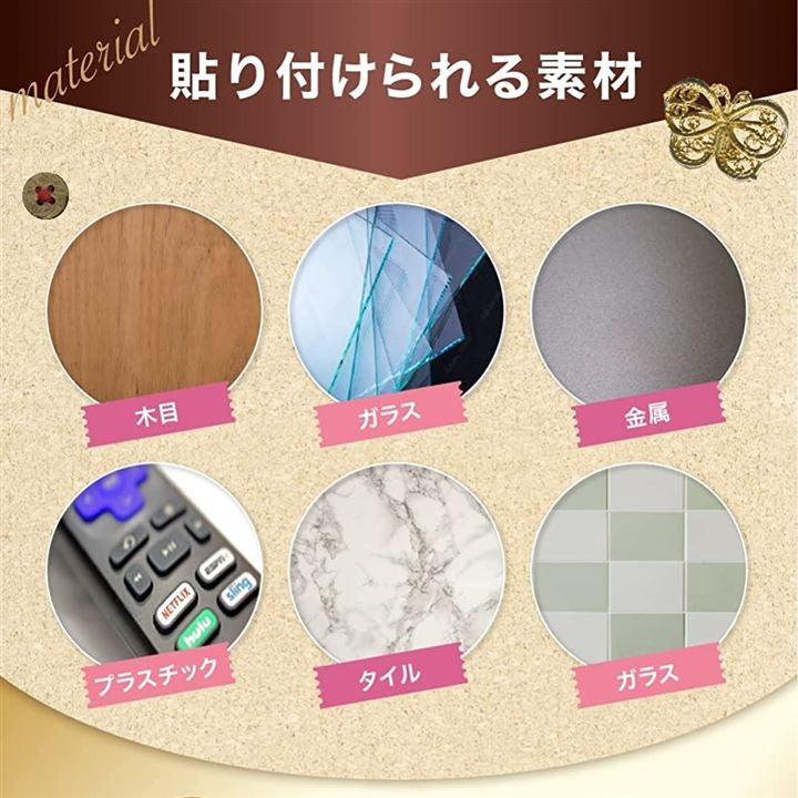 多少の重さがある物を天井に貼り付けたり、車内で転がりやすいものを固定したりする際に役立ちます。
