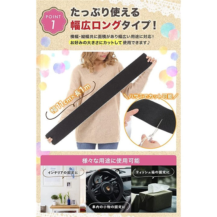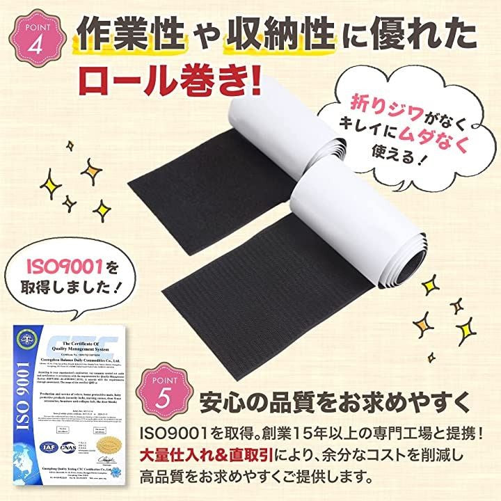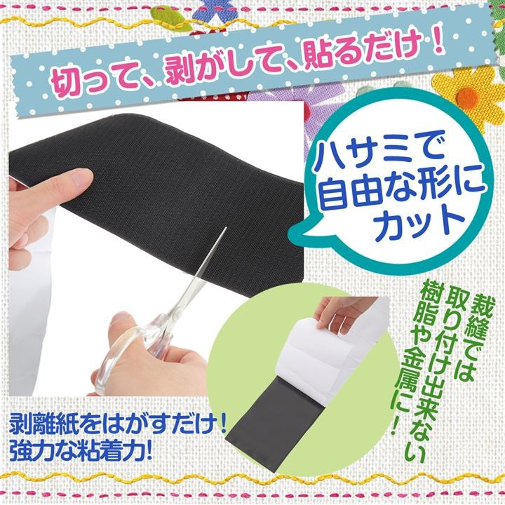 「互換品」factus 面ファスナー 手芸 幅広 収納袋付き (黒 両面テープ付き, 幅11cmx2m巻, メスのみ) |