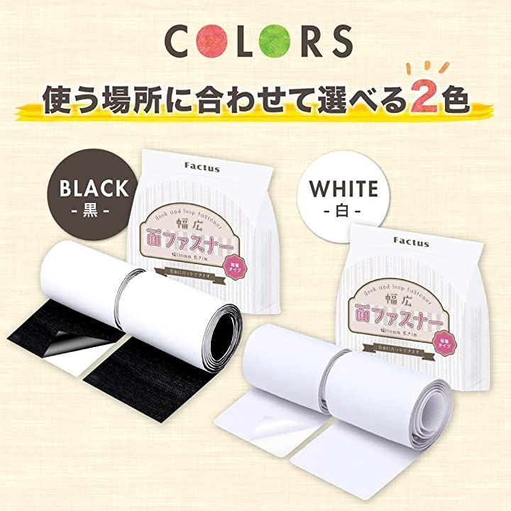 「互換品」factus 面ファスナー 手芸 幅広 収納袋付き (白色 両面テープ付き, 幅11cmx2m巻, オスのみ) |