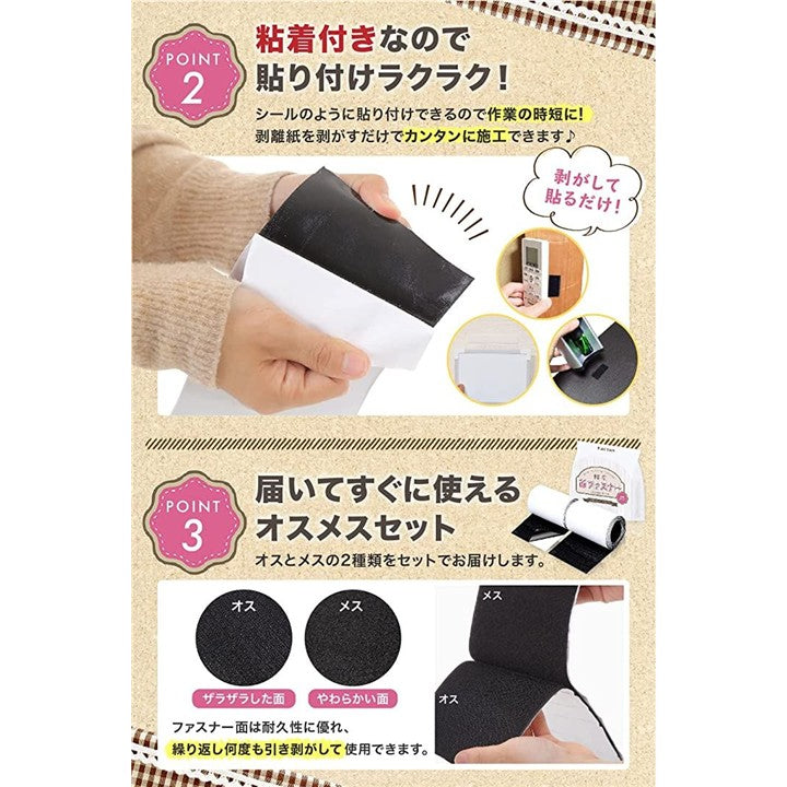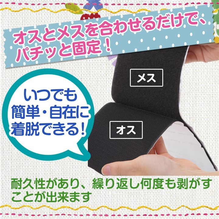 「 何度でも着脱可能 」耐久性に優れた面ファスナーで、何度でも繰り返して貼りつけたり剥がしたり自在にできます。
