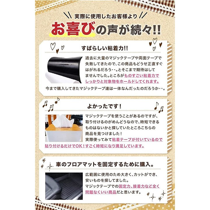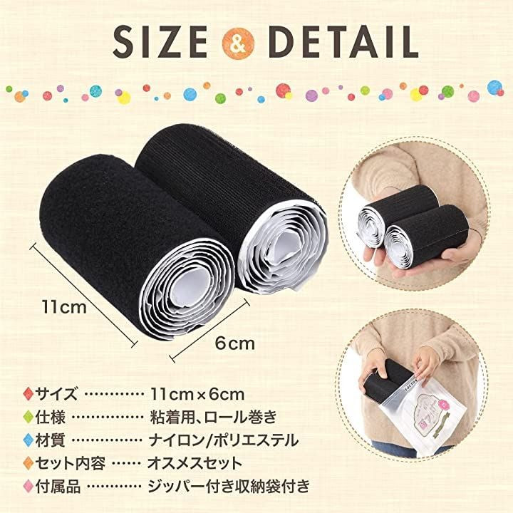 「互換品」factus 面ファスナー 手芸 幅広 収納袋付き (黒 両面テープ付き, 幅11cmx2m巻, オスのみ) |