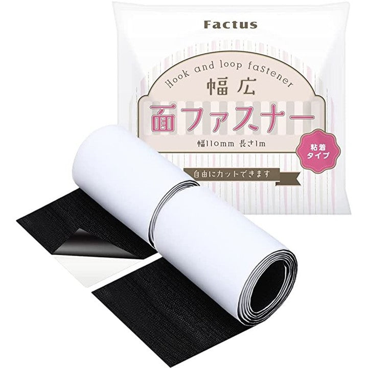 factus 面ファスナー 手芸 幅広 収納袋付き (白 両面テープ付き, 幅11cmx1m巻、オスメスセット) |