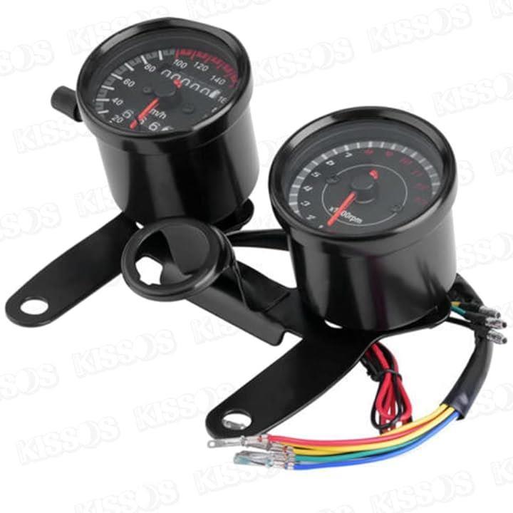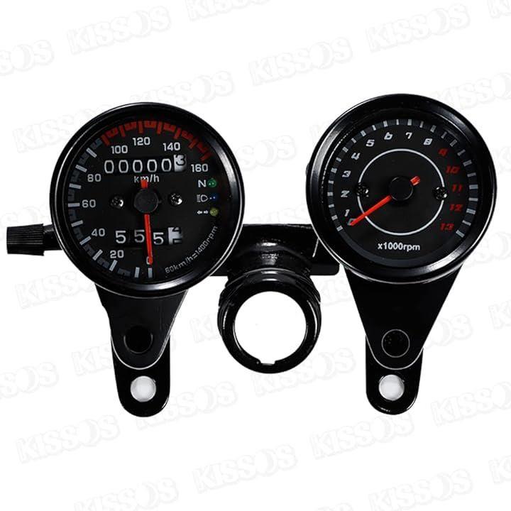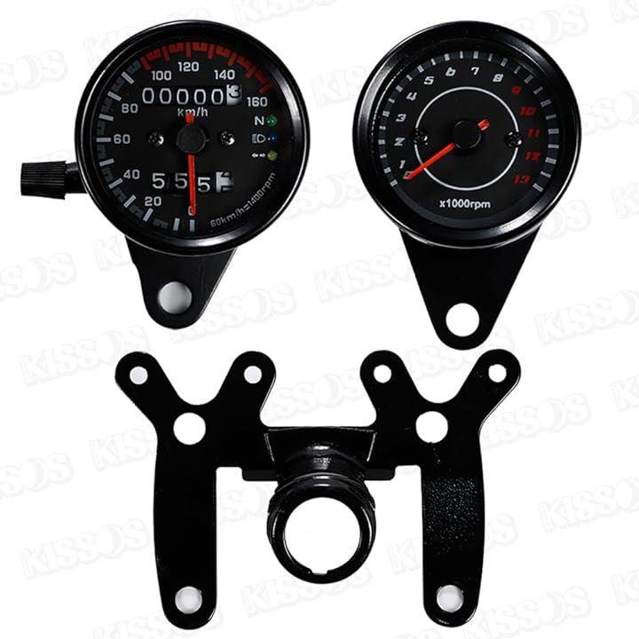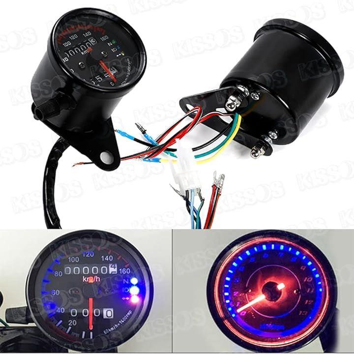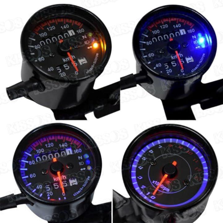 互換品バイク オートバイ スピードメーター タコメーター 一式 キット 計器 距離計 ブルー LED 汎用