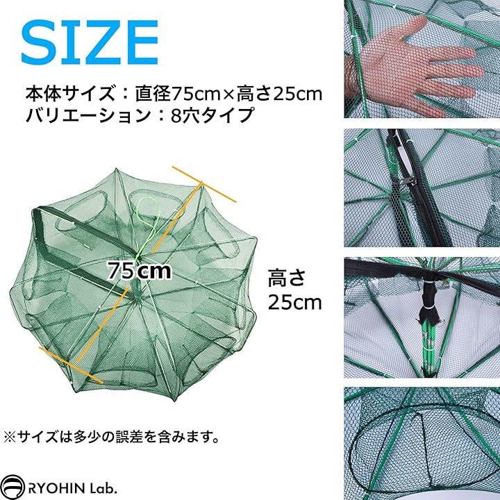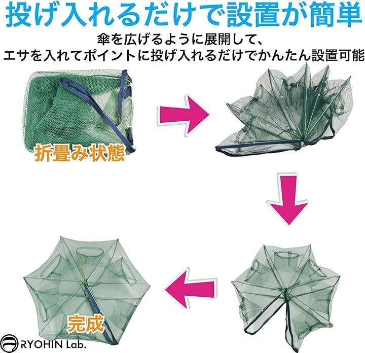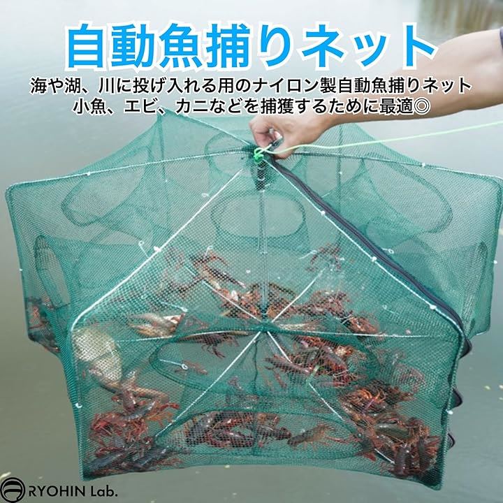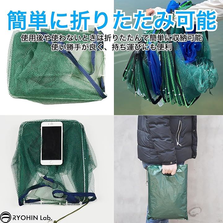 良品ラボ 網 仕掛け 小魚 エビ カニ 網かご 魚捕り網 漁具 折りたたみ可能 コンパクト収納 丈夫 ネット 1個