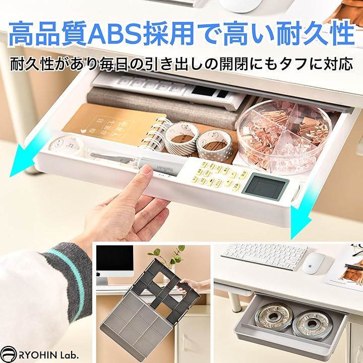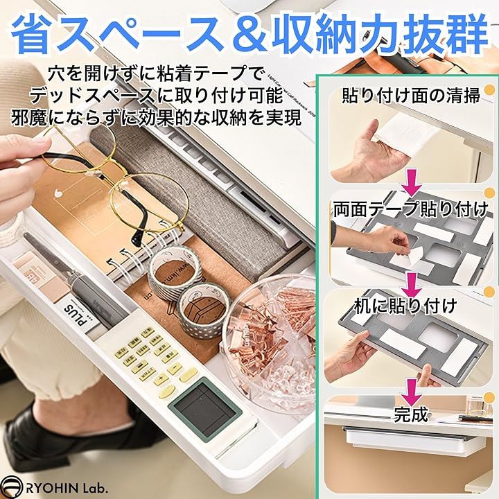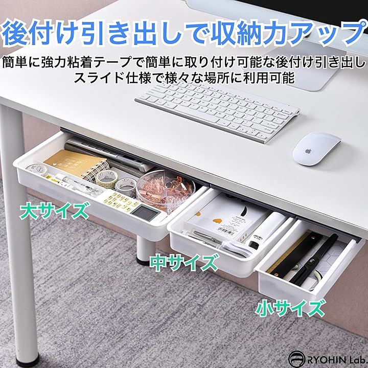 良品ラボ 後付け引き出し デスク下 テーブル 机下 収納ボックス 強力粘着テープ 取付 穴あけ不要 文房具 小物 シンプル おしゃれ 1個