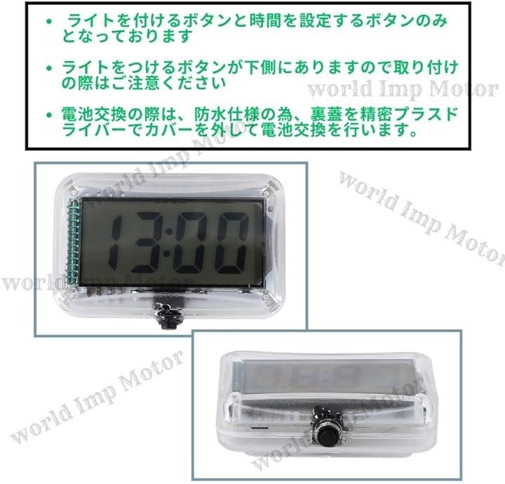 バイク オートバイ 用 防水 コンパクト ミニ クロック デジタル 時計 デジタル表示 バックライト 電池式