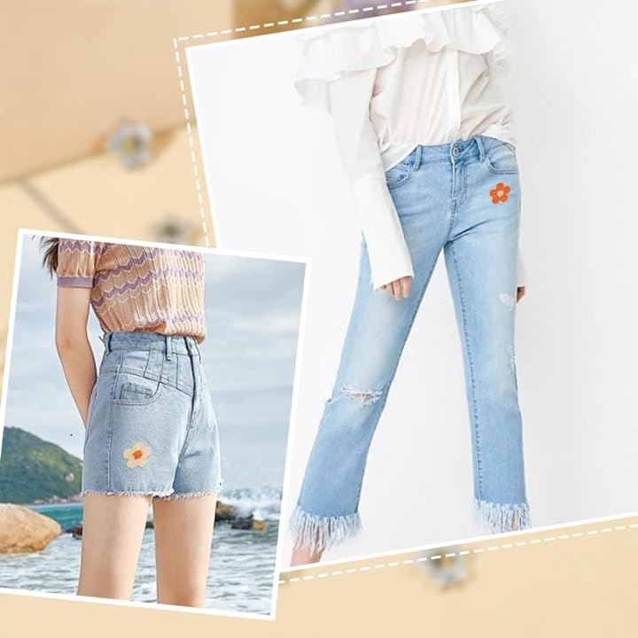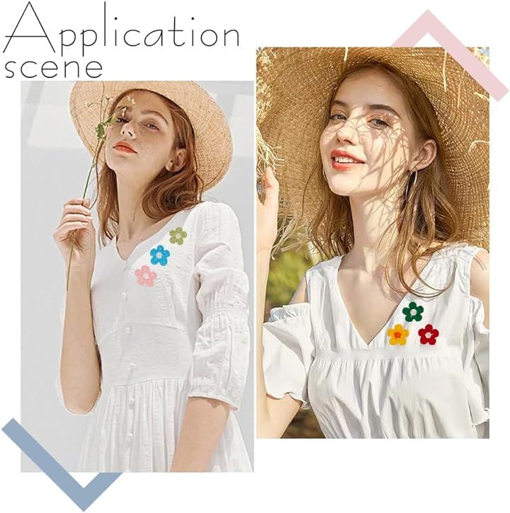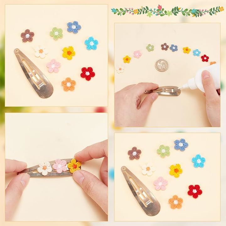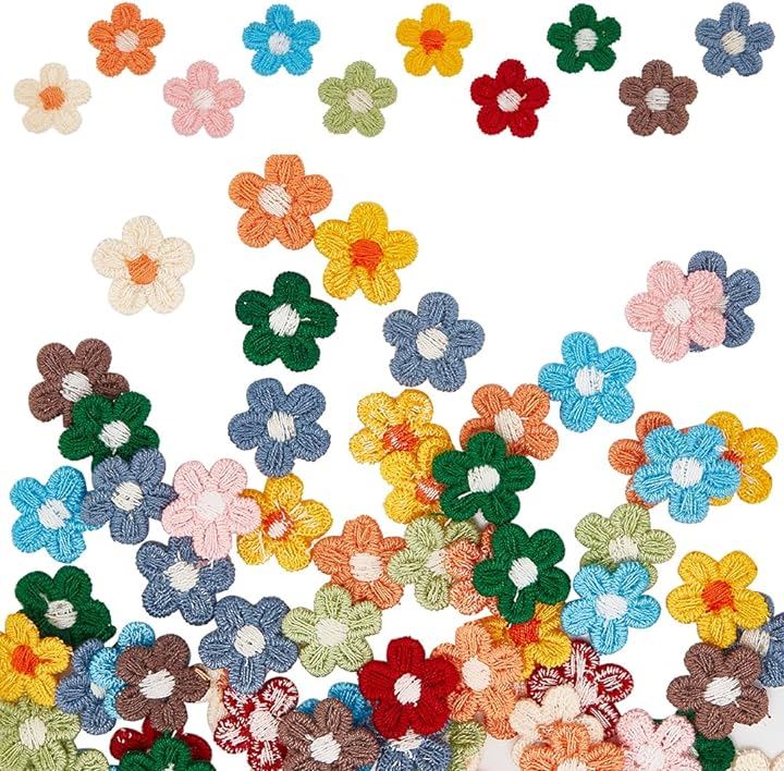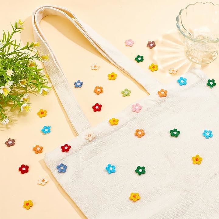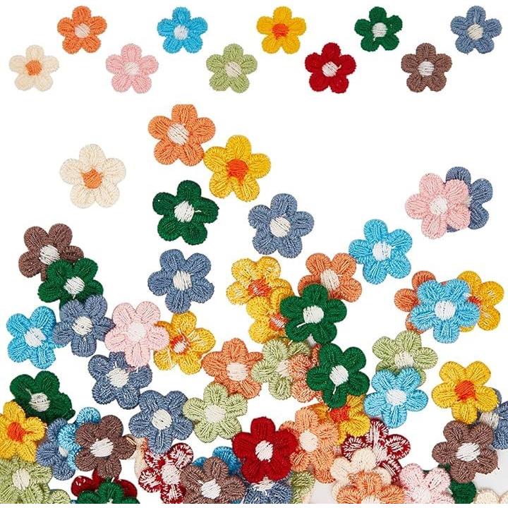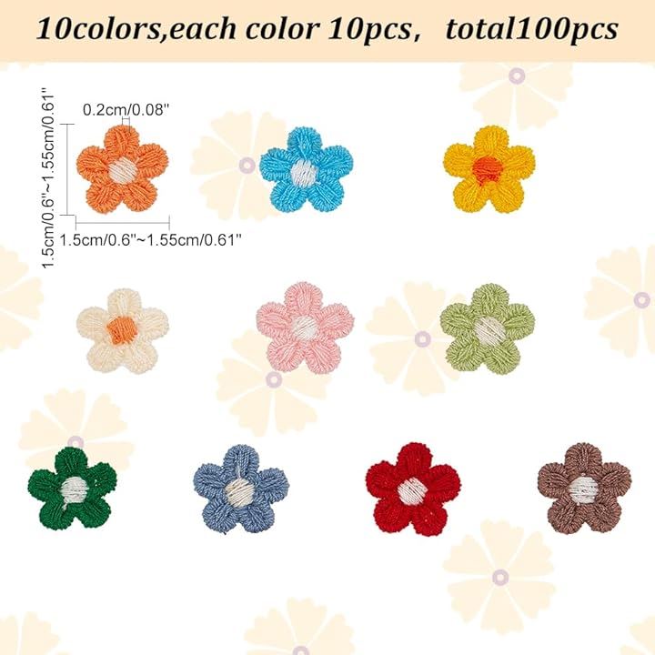 フラワー かぎ針編み アップリケ 100個 10色 パッチ 花 DIY 装飾 服 帽子ジーンズ バッグ ヘアクリップ