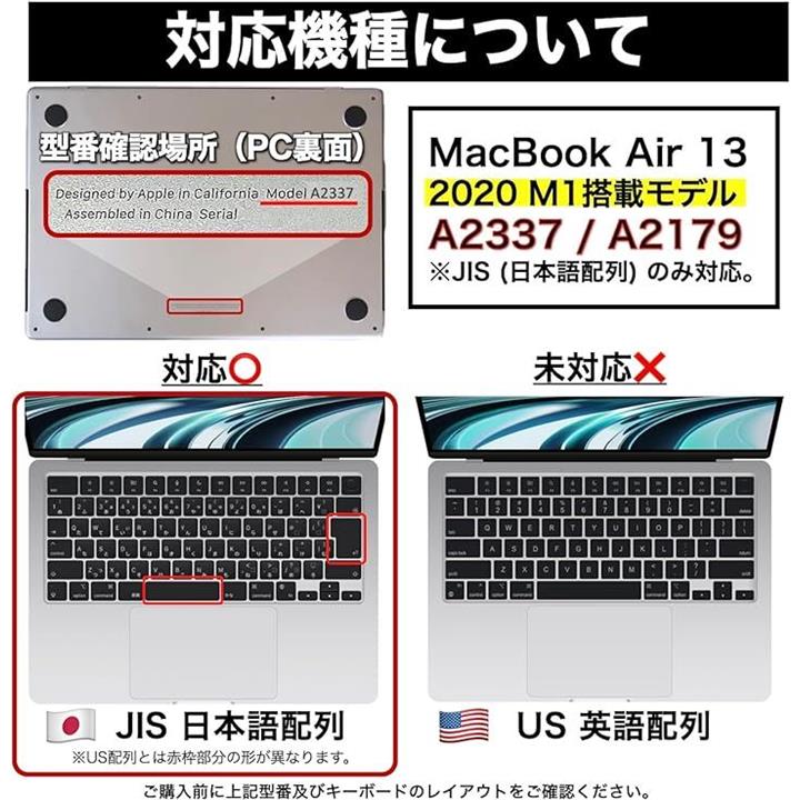 Macbook Air 13 M1キーボードカバー チップ搭載モデル A2337 / A2179 JIS配列 対応 耐水 耐塵